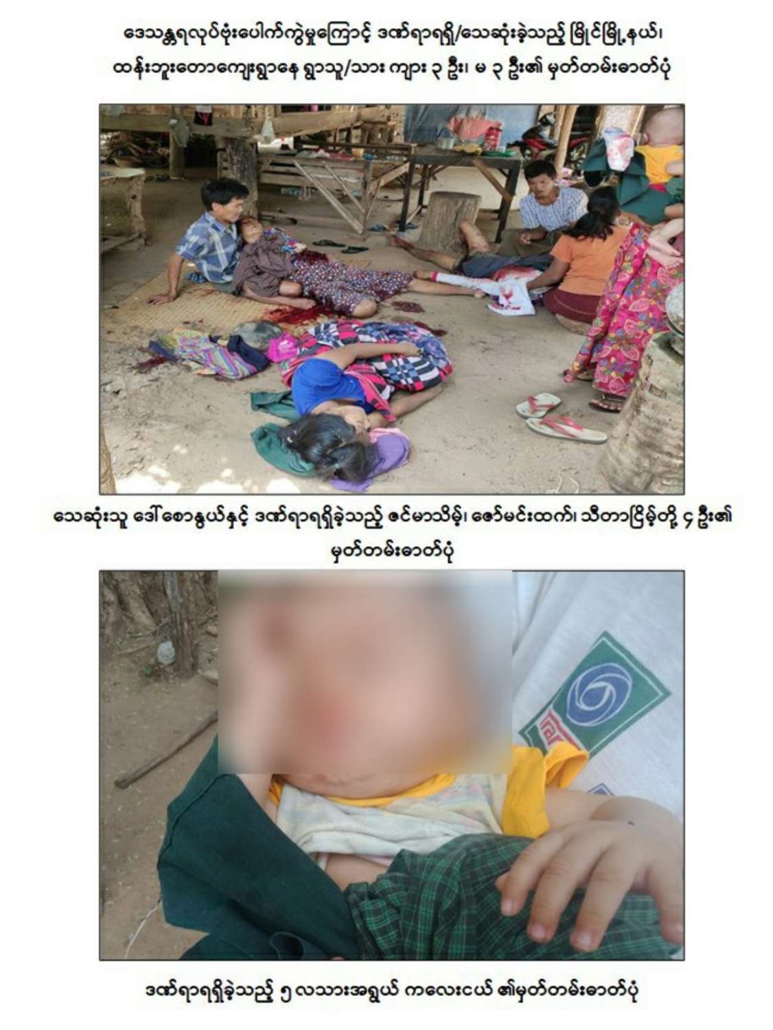 ထို့သို့ PDF အမည်ခံအကြမ်းဖက်သမားများ၏ ဆင်ခြင်တုံတရားမဲ့စွာ Drone ယာဉ်ဖြင့် လေကြောင်းမှ ဗုံးခွဲတိုက်ခိုက်မှုကြောင့် ဇွန် ၂၂ ရက်တွင် မကွေးတိုင်းဒေသကြီး၊ မြိုင်မြို့နယ်၊ ထန်းဘူးတောကျေးရွာ၌ အပြစ်မဲ့ ၅ လသားအရွယ် အမြွှာ ကလေးငယ် ၁ ဦးနှင့် အသက် ၆၇ နှစ် အရွယ်အမျိုးသမီး ၁ ဦးတို့ သေဆုံးခဲ့ပြီး ကျန်အမြွှာကလေးငယ် ၁ ဦးနှင့် မိသားစုဝင် ၃ ဦး ဒဏ်ရာရရှိခဲ့ကြောင်း သိရှိရသည်။