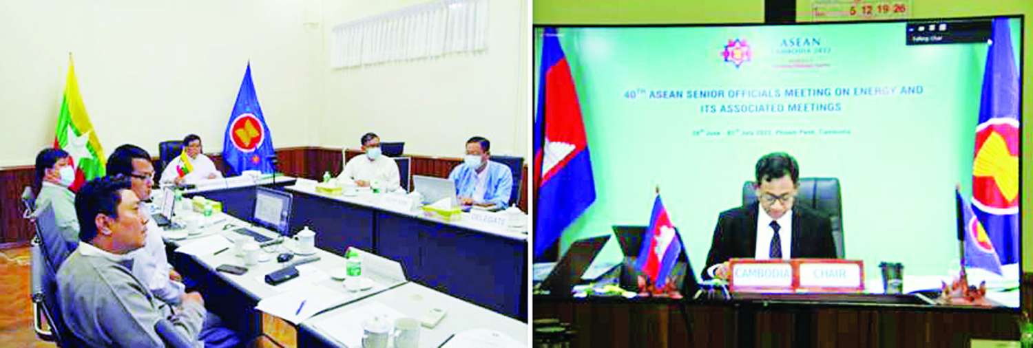 အကြိမ်(၄၀)မြောက် အာဆီယံစွမ်းအင်ဆိုင်ရာ အဆင့်မြင့်အရာရှိကြီးများ အစည်းအဝေးနှင့် ဆက်စပ်အစည်း အဝေးများ (40th Senior Officials Meeting on Energy (SOME) and Associated Meetings) ကို ယနေ့ တွင် ကမ္ဘောဒီးယားနိုင်ငံမှ အလှည့်ကျဥက္ကဋ္ဌအဖြစ် Video Conferencing စနစ်ဖြင့် ကြီးမှူးကျင်းပလျက်ရှိရာ အစည်းအဝေးသို့ မြန်မာနိုင်ငံ၏ အာဆီယံစွမ်းအင်ဆိုင်ရာ ကိုယ်စားလှယ်အဖွဲ့ခေါင်းဆောင် (Head Of Delegation) စွမ်းအင်ဝန်ကြီးဌာန ရေနံနှင့်သဘာဝဓာတ်ငွေ့စီမံရေးဦးစီးဌာန ညွှန်ကြားရေးမှူးချုပ် ဦးဝင်းမော်နှင့်အတူ စွမ်းအင်ဆိုင်ရာကဏ္ဍခွဲအလိုက် တာဝန်ရှိသူများ တက်ရောက်သည်။