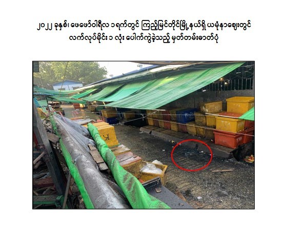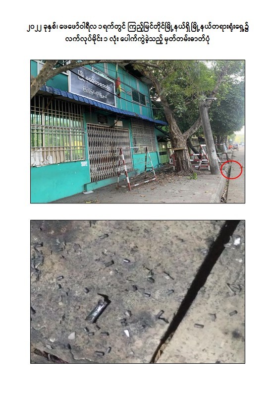 -ဇွန်လ ၁၆ ရက်တွင် သန့်ဇင်အောင်(ခ)TK Boss သည် ဒဂုံမြို့သစ်(တောင်ပိုင်း) မြို့နယ်၊ ဧရာဝတီလမ်းရှိ ရဲကင်းရုံအား လက်လုပ်မိုင်း ၁ လုံး ပစ်ခတ်ဖောက်ခွဲခဲ့ကြောင်း။
