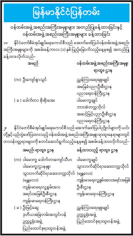 ဝန်ကြီးဌာန ကြေညာချက်များ