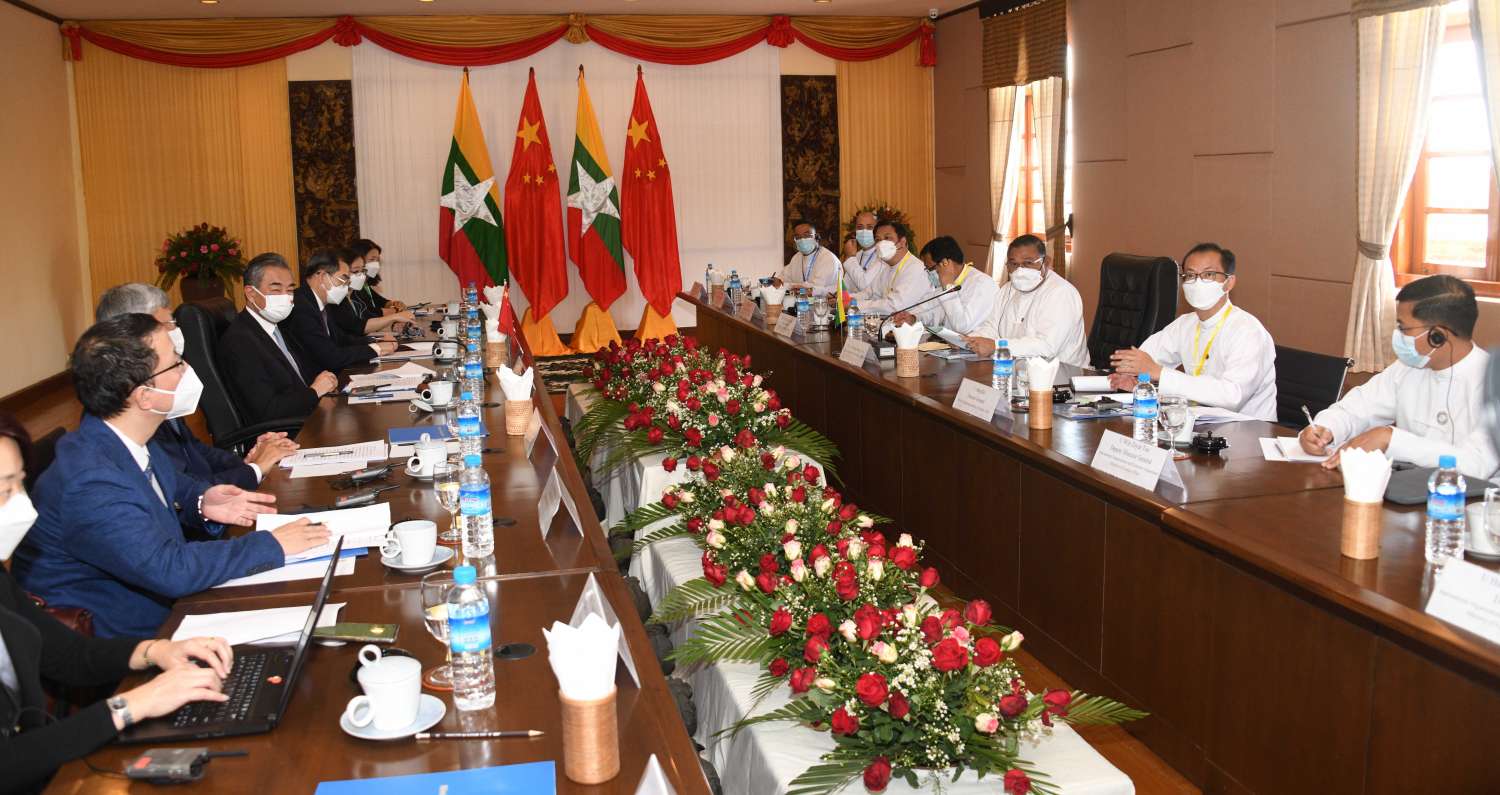 ယင်းနောက် ပြည်ထောင်စုဝန်ကြီးက မြန်မာနိုင်ငံ၏ နောက်ဆုံးနိုင်ငံရေး ဖြစ်ပေါ်တိုးတက်မှုများနှင့် နိုင်ငံတော်စီမံအုပ်ချုပ်ရေးကောင်စီ၏ ရှေ့လုပ်ငန်းစဉ် (၅)ရပ် အောင်မြင်စွာ ဖော်ဆောင်နေမှုတို့ကို တရုတ်နိုင်ငံ၊ နိုင်ငံတော်ကောင်စီနှင့် နိုင်ငံခြားရေးဝန်ကြီးအား ရှင်းလင်းပြောကြားခဲ့သည်။
