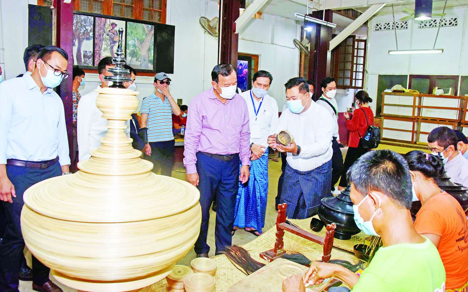 ယင်းနောက် ကမ္ဘောဒီးယားနိုင်ငံ ဒုတိယဝန်ကြီးချုပ်၊ လာအိုနိုင်ငံအဆင့်မြင့် အရာရှိကြီးနှင့် ကိုယ်စား လှယ်အဖွဲ့တို့သည် ပုဂံမြို့သစ်ရှိ ဦးဘငြိမ်းယွန်းထည်ဆိုင်သို့ သွားရောက်၍ ယွန်းထည်လုပ်ငန်း ပြုလုပ်နေပုံ အဆင့်ဆင့်ကို လေ့လာကြည့်ရှုခဲ့ကြောင်း သိရသည်။