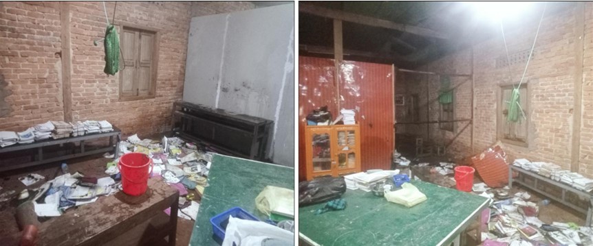 ထိုသို့လုပ်ဆောင်လျက်ရှိရာ ဇူလိုင်လ ၅ ရက် ည ၉ နာရီ အချိန်ခန့်တွင် ပဲခူးတိုင်းဒေသကြီး၊ ရွှေကျင်မြို့နယ်၊ ဆိပ်ကလေးကျေးရွာ၌ ဖွင့်လှစ်ထားပြီး ကျောင်းသူ၊ ကျောင်းသား ၆၃၀ ဦး ပညာသင်ကြားလျက်ရှိသည့် အခြေခံပညာ အထက်တန်းကျောင်းခွဲအား PDF အမည်ခံ အကြမ်းဖက် သမားများက မီးရှို့ကာ ထွက်ခွာသွားခဲ့သဖြင့် မီးလောင်မှု ဖြစ်ပွားခဲ့ရာ ကျေးရွာနေပြည်သူများမှ ဝိုင်းဝန်း မီးငြှိမ်းသတ်ခဲ့ရာ ၁၀ မိနစ်ခန့်အကြာတွင် မီးငြိမ်းသွားခဲ့ပြီး မီးလောင်မှုကြောင့် စာသင်ကျောင်းဝင်း အတွင်းရှိ ဆရာ၊ ဆရာမများ နားနေဆောင် ပေ ၂၀ ပတ်လည် ၂ ခန်းတွဲမှ အခန်းတစ်ခန်းနှင့် စာကြည့်တိုက် အခန်းအတွင်းရှိ ၃ ထပ်သားပြား ၂ ချပ်၊ စားပွဲခုံ ၁ လုံး၊ စာရွက် စာတမ်းများ မီးလောင်ပျက်စီး ဆုံးရှုံးခဲ့ပါသည်။
