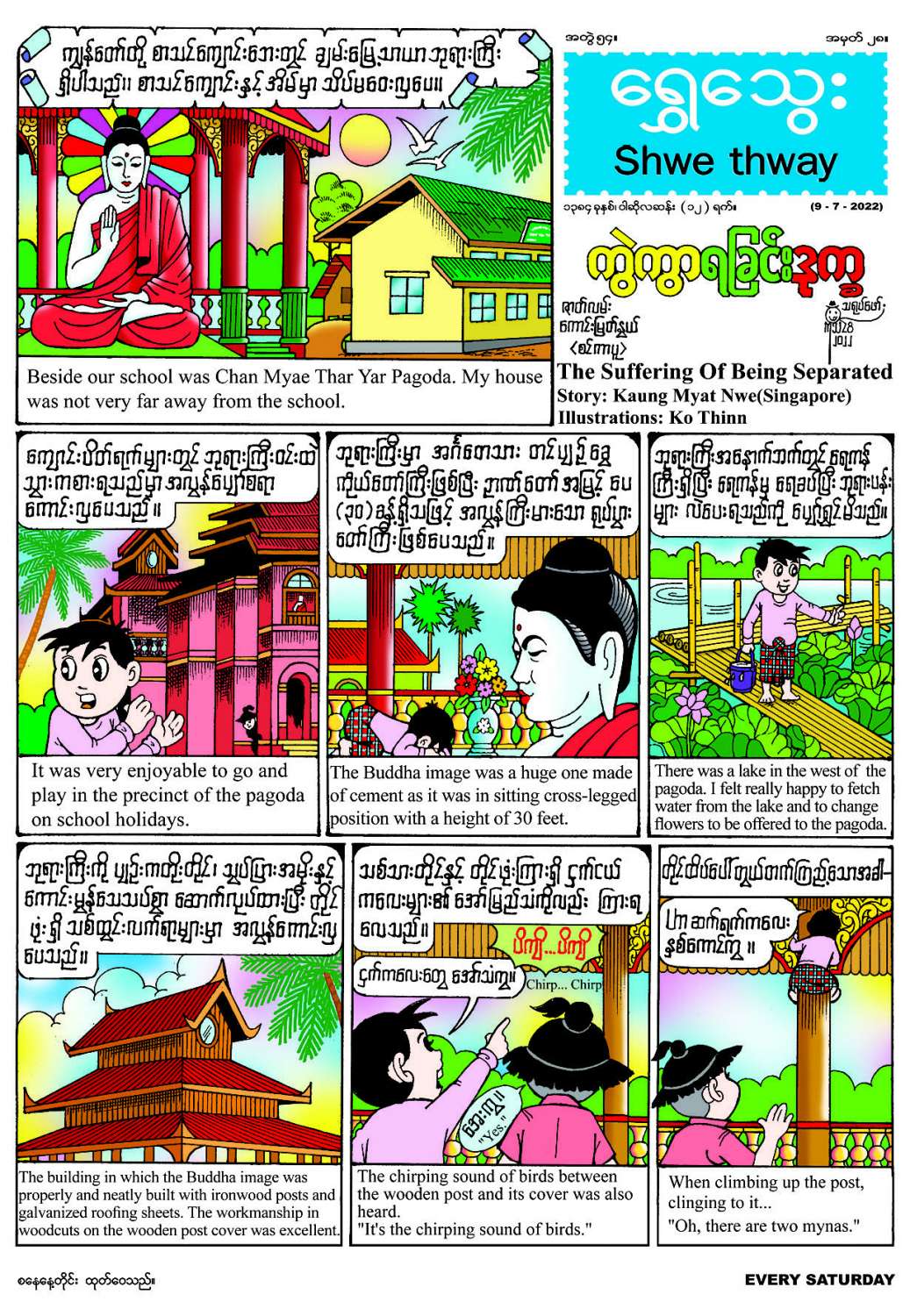 ၉-၇-၂၀၂၂ ရက် (စနေနေ့)တွင် ထွက်ရှိမည့် ရွှေသွေးဂျာနယ်ကို အတွဲ(၅၄)၊ အမှတ် (၂၈)တွင် မိဘနှင့် သားသမီးကွဲကွာရခြင်းဒုက္ခသည် အင်မတန်ပူဆွေးသောကရောက်ရပုံကို ကိုယ်တိုင်ခံစားလိုက်ရသည့် အာတူးအကြောင်း တင်ဆက်ထားသည့် “ကွဲကွာရခြင်းဒုက္ခ” မျက်နှာဖုံး ကာတွန်း၊ လူသားတို့၏ မျက်ရည်အကြောင်းကို ဗဟုသုတဖြစ်ဖွယ် တင်ဆက်ထားသည့် “မျက်ရည်ဆိုတာ” သုတဆောင်းပါး၊ ကလေးတို့ ကိုယ်တိုင်ရေးဆွဲထားသည့် ပန်းချီလက်ရာများကို တင်ဆက်ထားသည့် “ရွှေသွေးတို့လက်ရာ” ကဏ္ဍ၊ ဟင်းကောင်းချက်သော အိမ်တွင်ဧည့်သည် လုပ်ကာထမင်းလိုက်စားတတ်သော ဦးထွေးအကြောင်းကို ဟာသဖြစ်ဖွယ် သရုပ်ဖော်ထားသည့် “ဖြိုးရဲ-ဧည့်သည်” နှစ်မျက်နှာကာတွန်း၊ သီးပင်စားပင်များကို အိမ်ခြံဝင်းအတွင်း တစ်နိုင်တစ်ပိုင်စိုက်ရုံဖြင့် မိသားစု၏ မီးဖိုချောင်ကို ဖူလုံစေသည့်အပြင် သစ်ပင်စိုက်ပျိုး ခြင်း၏ အကျိုးကျေးဇူးကို တင်ဆက်ထားသည့် “ကမ္ဘာကြီးစိမ်းလန်းပါစေ” ဝတ္ထုကဏ္ဍ၊ အစား စားရာတွင် ဓာတ်မတည့်သော အစားအစာများကို တွဲဖက်မစားမိစေရန် သတိပြုဆင်ခြင်ရမည်ဖြစ်ကြောင်း ရေးဖွဲ့ထားသည့် “မေ့မေ့ကိုချစ်လို့” တစ်မျက်နှာကာတွန်း၊ ပုံပြင်ကဏ္ဍ၊ ဉာဏ်စမ်းကဏ္ဍအပါအဝင် အင်္ဂလိပ်စကားဝိုင်းကဏ္ဍနှင့် ကဗျာကဏ္ဍစုံလင်စွာဖြင့် ထွက်ရှိပြီဖြစ်ရာ တစ်စောင်လျှင် ငွေကျပ် ၄၀၀ ဖြင့် စာပေဗိမာန် စာအုပ်အရောင်းဆိုင်များတွင် ဝယ်ယူနိုင်ကြောင်း သိရသည်။