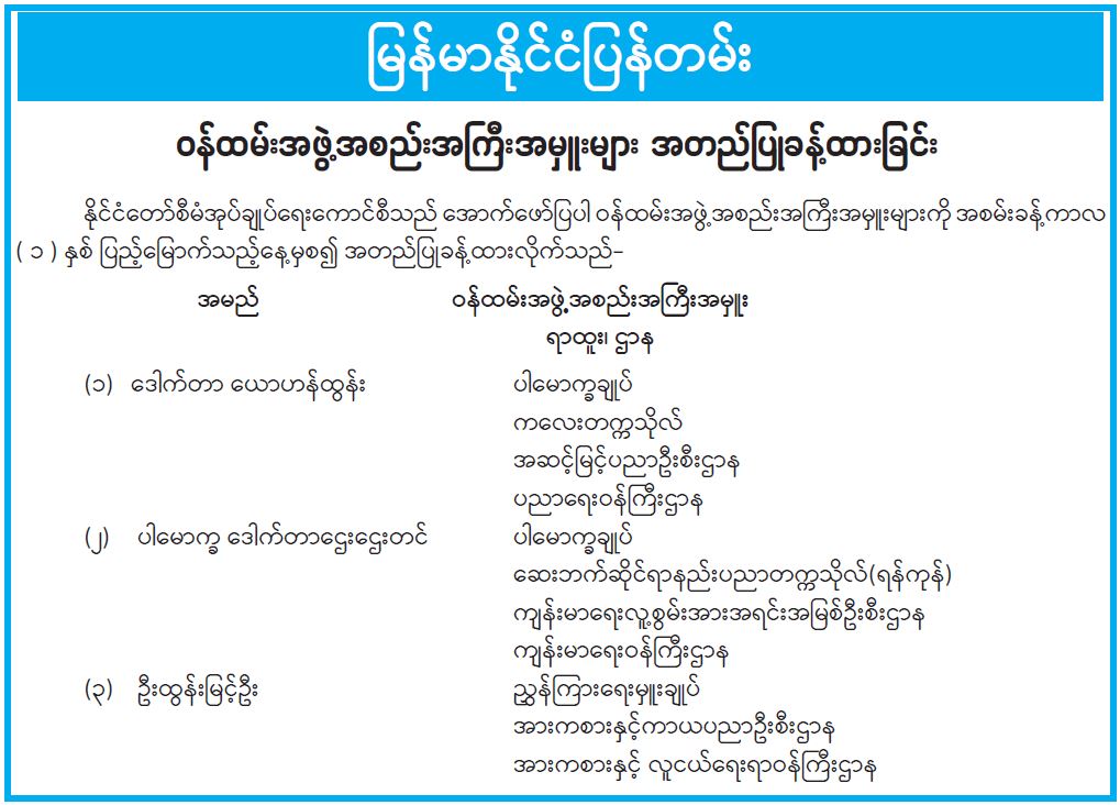 ဝန်ထမ်းအဖွဲ့အစည်းအကြီးအမှူးများ အတည်ပြုခန့်ထားခြင်း