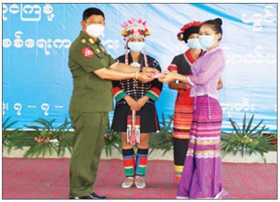ရှမ်းပြည်နယ်(အရှေ့ပိုင်း) မိုင်းလား၊ ဆီလူး၊ နမ့်ပန်းဒေသများရှိ ဒေသခံတိုင်းရင်းသားပြည်သူများအား နိုင်ငံသားစိစစ်ရေးကတ်ပြား ပေးအပ်ခြင်းကို ယမန်နေ့နံနက်ပိုင်းက အဆိုပါဒေသများရှိ ခန်းမအသီးသီး၌ ပြုလုပ်ရာ တြိဂံဒေသ တိုင်းစစ်ဌာနချုပ်တိုင်းမှူး ဗိုလ်ချုပ်မျိုးမင်းထွန်းနှင့် ဌာနဆိုင်ရာတာဝန်ရှိသူများ၊ ဒေသခံတိုင်းရင်းသားပြည်သူများ တက်ရောက်ကြသည်။