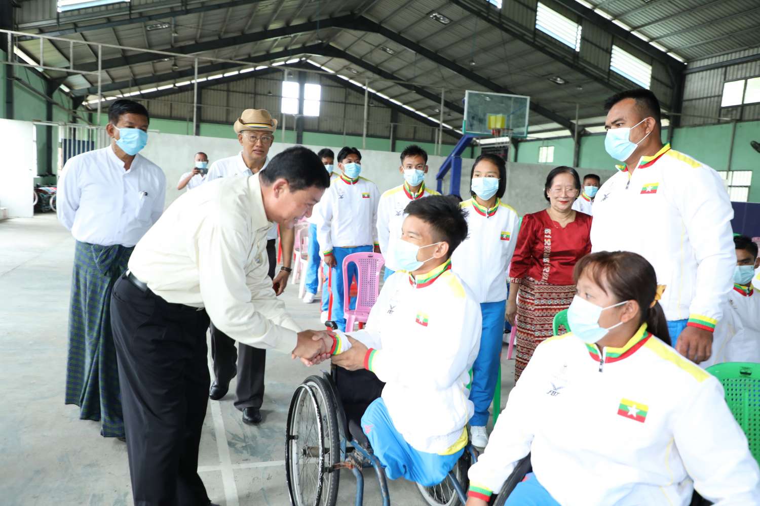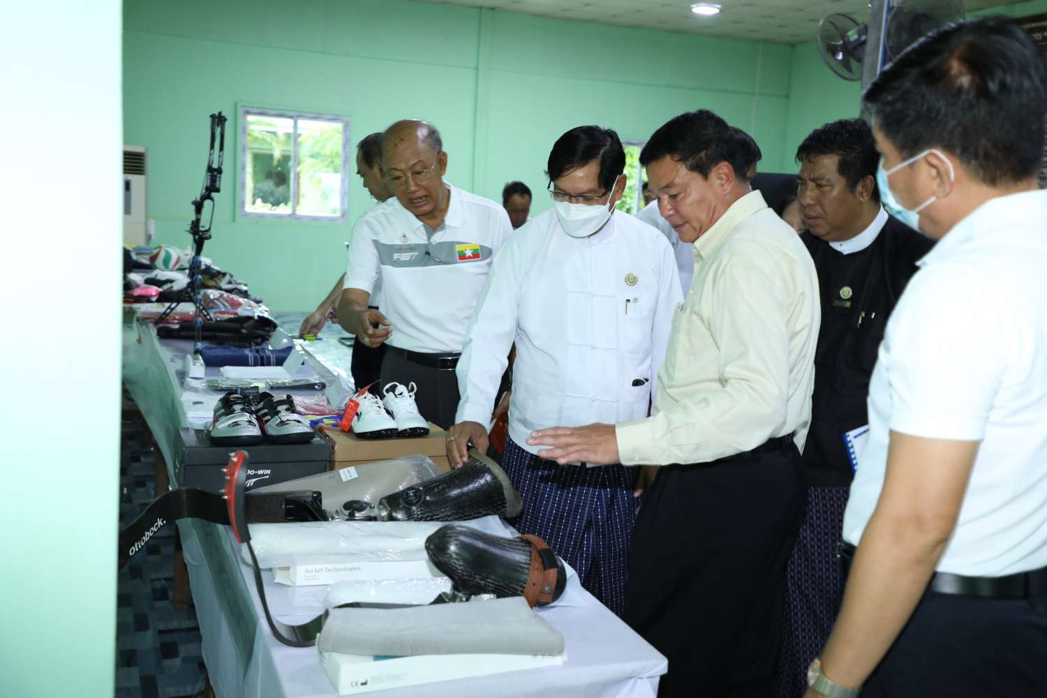 ယင်းနောက် ပြည်ထောင်စုဝန်ကြီးနှင့် အဖွဲ့သည် ပြိုင်ပွဲသို့ သွားရောက်ယှဉ်ပြိုင်ရာတွင် ယူဆောင်သွားမည့် အားကစားအထောက်အကူပြု ပစ္စည်းများကို ကြည့်ရှုစစ်ဆေးပြီး တိုင်းဒေသကြီး ဝန်ကြီးချုပ်က မြန်မာနိုင်ငံ မသန်စွမ်း အားကစားအဖွဲ့ချုပ်သို့ ငွေကျပ် (၁၅)သိန်း ထောက်ပံ့ပေးအပ်သည်။