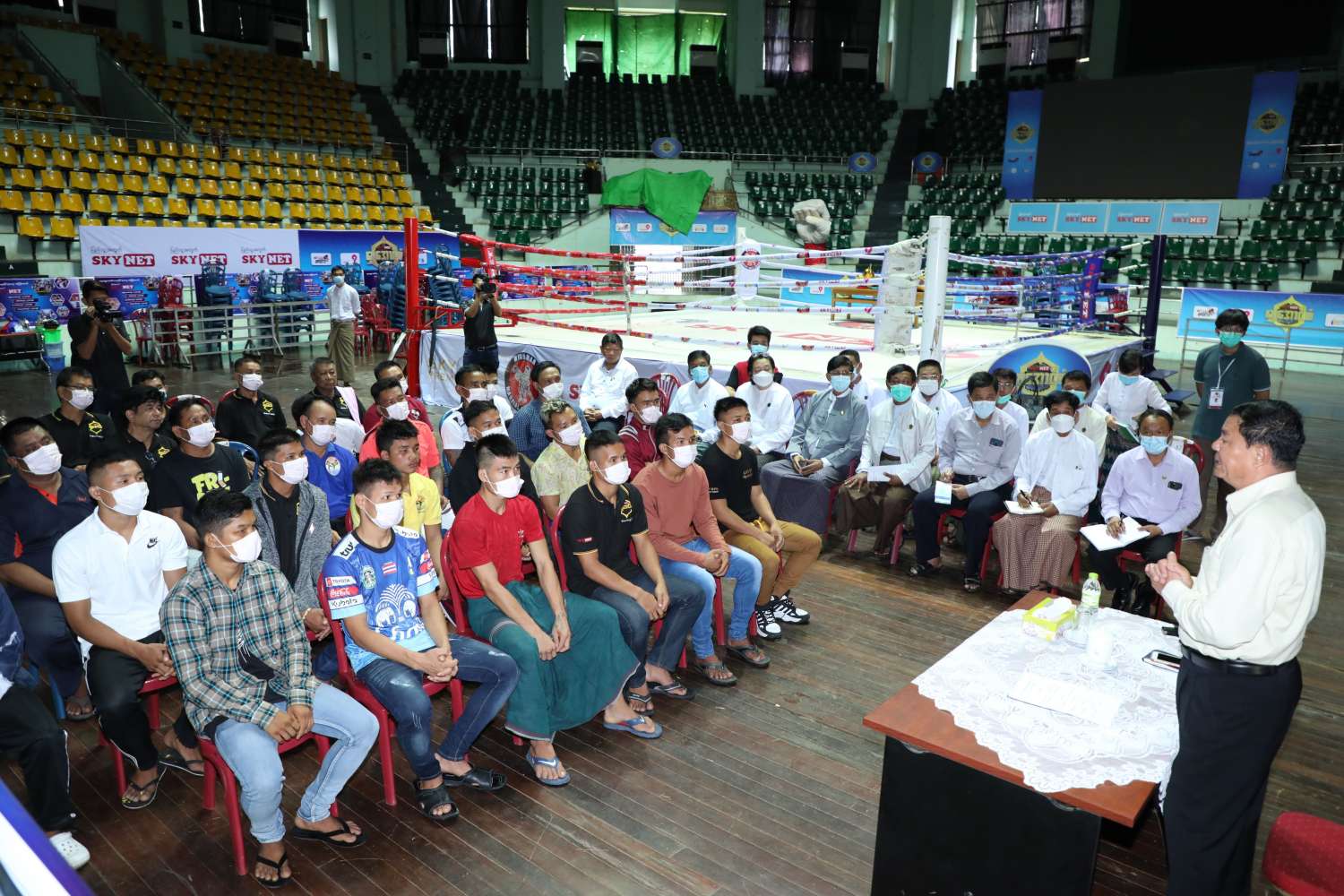 ထို့နောက် ပြည်ထောင်စုဝန်ကြီးနှင့် အဖွဲ့သည် မင်္ဂလာတောင်ညွန့်မြို့နယ်ရှိ သိမ်ဖြူလက်ဝှေ့ ရုံသို့ရောက်ရှိပြီး မြန်မာနိုင်ငံရိုးရာလက်ဝှေ့အဖွဲ့ချုပ်မှ ဥက္ကဋ္ဌ ဦးသိန်းအောင်နှင့် အဖွဲ့ချုပ်မှ တာဝန်ရှိပုဂ္ဂိုလ်များ၊ နည်းပြ/ဒိုင်လူကြီးများနှင့် အားကစားသမားများကို တွေ့ဆုံအမှာစကား ပြောကြားသည်။