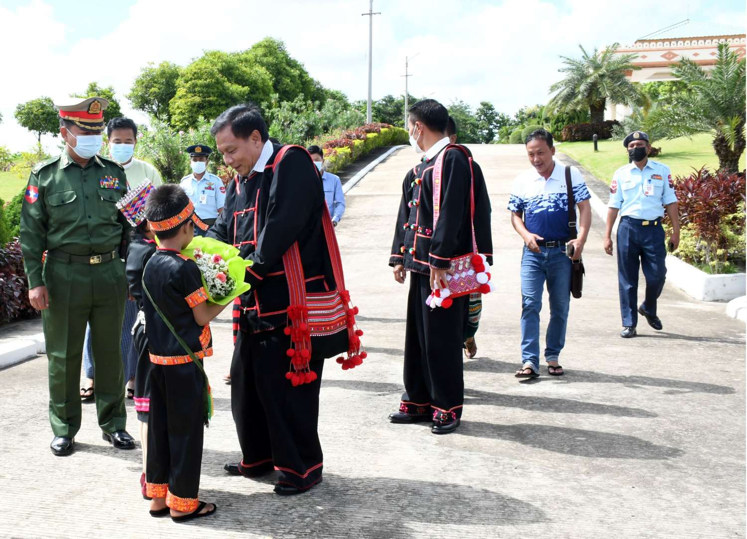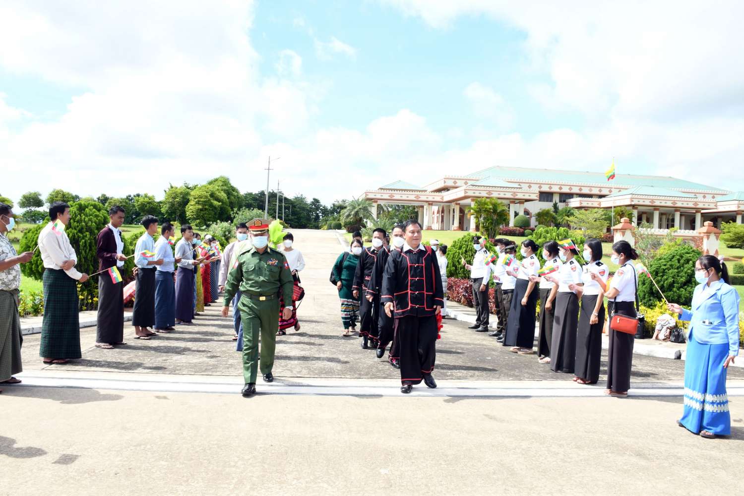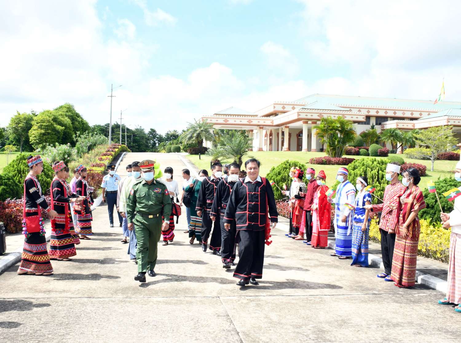 အဆိုပါ လားဟူဒီမိုကရက်တစ်အစည်းအရုံး (LDU) အထွေထွေအတွင်းရေးမှူး ဦးဆောင်သည့် ငြိမ်းချမ်းရေးကိုယ်စားလှယ်အဖွဲ့အား အမျိုးသားစည်းလုံးညီညွတ်ရေးနှင့် ငြိမ်းချမ်းရေးဖော်ဆောင်မှု ညှိနှိုင်းရေးကော်မတီ အဖွဲ့ဝင်များနှင့် တာဝန်ရှိသူများ၊ သာသနာရေးနှင့်ယဉ်ကျေးမှုဝန်ကြီးဌာန၊ အနုပညာဦးစီးဌာနမှ တိုင်းရင်းသားတိုင်းရင်းသူများ၊ ဌာနဆိုင်ရာဝန်ထမ်းများ၊ ငြိမ်းချမ်းရေးကို လိုလားသည့် ဒေသခံပြည်သူများက ထာဝရငြိမ်းချမ်းရေးကို ရရှိရေးသည် ပြည်သူတစ်ရပ်လုံး၏ ဆန္ဒအစစ်အမှန် ဖြစ်သည်၊ ငြိမ်းချမ်းရေးရရှိရေးသည် နိုင်ငံသားအားလုံး၏ ဆန္ဒအမှန်ဖြစ်သည်၊ ပြည်ထောင်စုကြီး ငြိမ်းချမ်းဖို့တွေ့ဆုံ ဆွေးနွေးကြပါစို့၊ တိုင်းရင်းသားတွေစည်းလုံးမှ ငြိမ်းချမ်းတည်ငြိမ် အေးချမ်းရစသည့် စာသားပါ ဆိုင်းဘုတ်များကိုင်ဆောင်၍ လည်းကောင်း၊ နိုင်ငံတော်အလံငယ်များ ကိုင်ဆောင်၍လည်းကောင်း နေပြည်တော်လေဆိပ်၌ ပို့ဆောင်နှုတ်ဆက်ကြသည်။