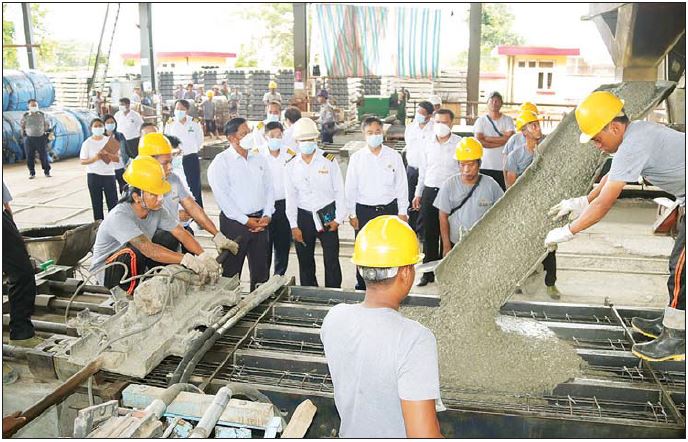 ယင်းနောက် ပြည်ထောင်စုဝန်ကြီးနှင့်အဖွဲ့သည် ကွန်ကရစ် ဇလီဖားစက်ရုံ(မြစ်ငယ်)သို့ ရောက်ရှိပြီး ထုတ်လုပ်မှု စံချိန်စံညွှန်းပြည့်မီရေး ကုန်ကြမ်းပစ္စည်းများ လေလွင့်ဆုံးရှုံးမှု မရှိစေရေး မှာကြားသည်။