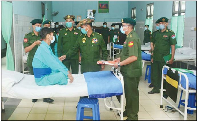 ထို့နောက် ကာကွယ်ရေးဦးစီးချုပ်ရုံး(ကြည်း)မှ ဒုတိယဗိုလ်ချုပ်ကြီး အောင်စိုး၊ တိုင်းမှူးနှင့် တာဝန်ရှိသူများက ဆေးရုံအတွင်း လှည့်လည်ကြည့်ရှုပြီး လိုအပ်သည်များ ညှိနှိုင်းဆောင်ရွက်ပေးသည်။