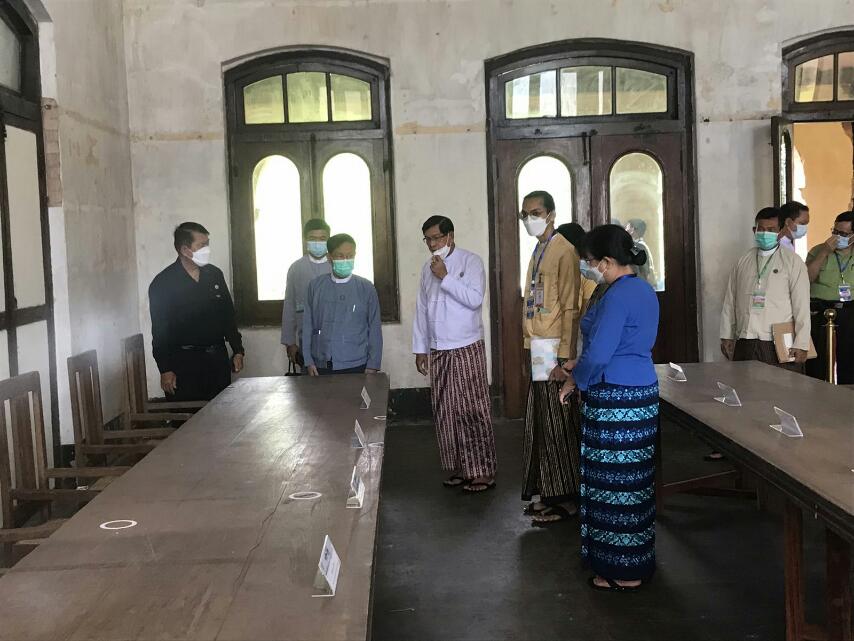 (၇၅) နှစ်မြောက် အာဇာနည်နေ့ အခမ်းအနားကျင်းပရေး ဗဟိုကော်မတီဥက္ကဋ္ဌ သာသနာရေးနှင့် ယဉ်ကျေးမှုဝန်ကြီးဌာန ပြည်ထောင်စုဝန်ကြီး ဦးကိုကိုသည် ဒုတိယဥက္ကဋ္ဌ ရန်ကုန်တိုင်းဒေသကြီးအစိုးရအဖွဲ့ဝန်ကြီးချုပ် ဦးစိုးသိန်း၊ ဒုတိယဝန်ကြီး ဒေါက်တာမိုးဇော်ထွန်း၊ ရန်ကုန်မြို့တော်စည်ပင်သာယာရေးကော်မတီဥက္ကဋ္ဌ မြို့တော်ဝန် ဦးဗိုလ်ဌေးနှင့် တာဝန်ရှိသူများ နှင့်အတူ ယနေ့နံနက် ၉ နာရီတွင် ရန်ကုန်တိုင်းဒေသကြီး၊ ဗိုလ်တထောင်မြို့နယ်ရှိ ဝန်ကြီးများရုံး (ယခင်အတွင်းဝန်ရုံး) သို့ရောက်ရှိပြီး ပါလီမန်အဆောက်အအုံနေရာ၊ နိုင်ငံတော်အလံတင်အခမ်းအနား ကျင်းပရာနေရာ၊ ဗိုလ်ချုပ်အောင်ဆန်းနှင့် အာဇာနည်ခေါင်းဆောင်ကြီးများ ကျဆုံးခဲ့သည့် အစည်းအဝေးခန်းမနှင့် အဆိုပါ အစည်းအဝေးခန်းမအတွင်းရှိ ခင်းကျင်းပြသထားသည့် ပြသပစ္စည်းများနှင့် ခင်းကျင်းပြသထားမှုများကို လှည့်လည်စစ်ဆေးသည်။