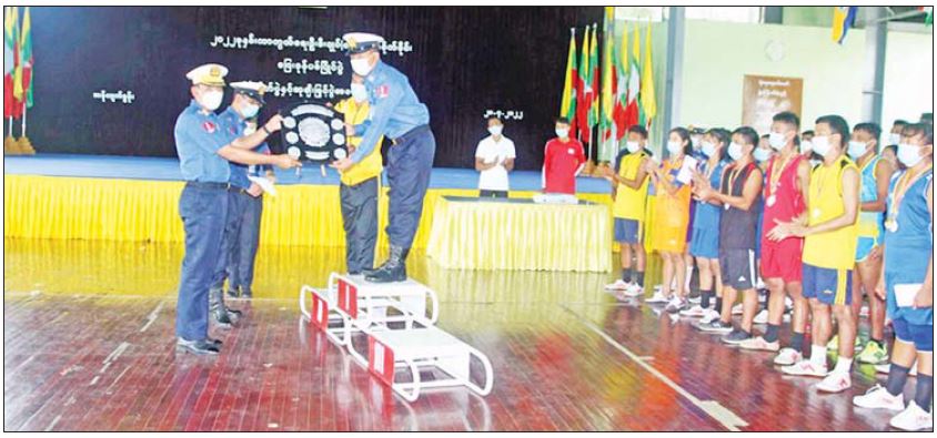 ၂၀၂၂ ခုနှစ် ကာကွယ်ရေးဦးစီးချုပ် (ရေ) တံခွန်စိုက်ဒိုင်း ပြေးခုန်ပစ်ပြိုင်ပွဲဆုပေးပွဲကို ယနေ့နံနက်ပိုင်းတွင် ဧရာဝတီရေတပ်စခန်းဌာနချုပ် သီဟသူရထွန်းတင်ခန်းမ၌ပြုလုပ်ရာ နယ်မြေခံရေတပ်ကွပ်ကဲမှုဌာနချုပ်၊ ကွပ်ကဲမှုဌာနချုပ်မှူး ဗိုလ်ချုပ် ထိန်ဝင်းနှင့် အရာရှိ၊ စစ်သည်၊ မိသားစုများ၊ ဒိုင်အဖွဲ့ဝင်များနှင့် ပြိုင်ပွဲဝင် အားကစားသမားများ တက်ရောက်ကြသည်။