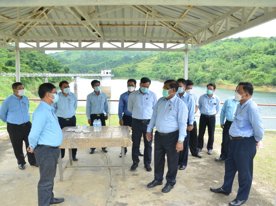 ရှေးဦးစွာ ပြည်ထောင်စုဝန်ကြီးနှင့်အဖွဲ့သည် ဖြူးမြို့ အနောက်တောင်ဘက် (၉) မိုင်ခန့်အကွာတွင် တည်ဆောက်ထားသည့် ကွန်းချောင်းရေအားလျှပ်စစ် ဓာတ်အားပေးစက်ရုံသို့ ရောက်ရှိကြပြီး ဓာတ်အားပေးစက်ရုံမှူးက စက်ရုံဆိုင်ရာ လုပ်ငန်းဆောင်ရွက်နေမှုကို ရှင်းလင်းတင်ပြရာ ပြည်ထောင်စုဝန်ကြီးက နိုင်ငံတော် ဖွံ့ဖြိုးတိုးတက်ရေးအတွက် လျှပ်စစ်ဓာတ်အားရရှိမှုသည် အဓိကကျသည့်အတွက် မိမိတို့ဝန်ကြီးဌာနအနေဖြင့် နိုင်ငံ၏ သဘာဝအရင်းအမြစ်များ ရရှိမှုအပေါ်အခြေခံ၍ စီးပွားရေးအရ တွက်ချေကိုက်ပြီး သဘာဝပတ်ဝန်းကျင်နှင့် လူမှုပတ်ဝန်းကျင်ကို ထိခိုက်မှုအနည်းဆုံး ဖြစ်စေမည့် ရေအားလျှပ်စစ်မှ လျှပ်စစ်ဓာတ်အား ထုတ်ယူနိုင်မည့် စီမံကိန်းအသစ်များကို စဉ်ဆက်မပြတ် အကောင်အထည်ဖော် ဆောင်ရွက်သွားရမည် ဖြစ်ကြောင်း၊ ထို့အတူ တည်ဆောက်ပြီး ဓာတ်အားပေးစက်ရုံများရှိ ဓာတ်အားပေးစက်များကို စက်စွမ်းအားပြည့် မောင်းနှင်လည်ပတ်နိုင်ရေးအတွက် ရေလှောင်တမံအတွင်း စီးဝင်လာသောရေကို စနစ်တကျ သိုလှောင်၍ လျှပ်စစ်ဓာတ်အားများ စဉ်ဆက်မပြတ် ထုတ်လုပ်နိုင်ရေး ကြိုးပမ်းဆောင်ရွက်သွားရန်၊ စက်ရုံရေရှည်တည်တံ့ခိုင်မြဲရေး၊ သတ်မှတ် Schedule အတိုင်း ဓာတ်အားပေးစက်များ လည်ပတ်ထုတ်လုပ်နိုင်ရေး ပုံမှန်ပြုပြင် ထိန်းသိမ်းခြင်းလုပ်ငန်းများ ဆောင်ရွက်သွားရန်နှင့် လုံခြုံရေးအထူးဂရုပြု ဆောင်ရွက်သွားရန် မှာကြားပြီး နိုင်ငံတော်ဓာတ်အားစနစ်သို့ ချိတ်ဆက်၍ လျှပ်စစ်ဓာတ်အား ပို့လွှတ်နေမှု၊ တာဘိုင်ခန်းအတွင်း စက်များမောင်းနှင်နေမှု၊ ရေလှောင်တမံအတွင်း ရေဝင်ရောက်မှု၊ ရေသိုလှောင်ထားရှိမှု၊ ရေယူအဆောက်အအုံ၊ ရေပိုလွှဲနှင့် ပင်မတမံကြံ့ခိုင်မှုကို လှည့်လည်ကြည့်ရှု စစ်ဆေးသည်။