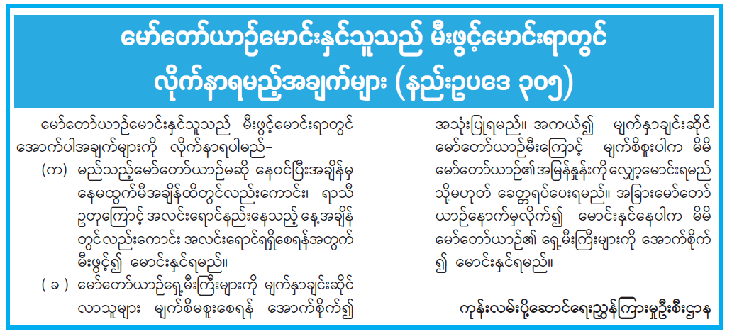 မော်တော်ယာဉ်မောင်းနှင်သူသည် မီးဖွင့်မောင်းရာတွင် လိုက်နာရမည့်အချက်များ (နည်းဥပဒေ ၃၀၅)
