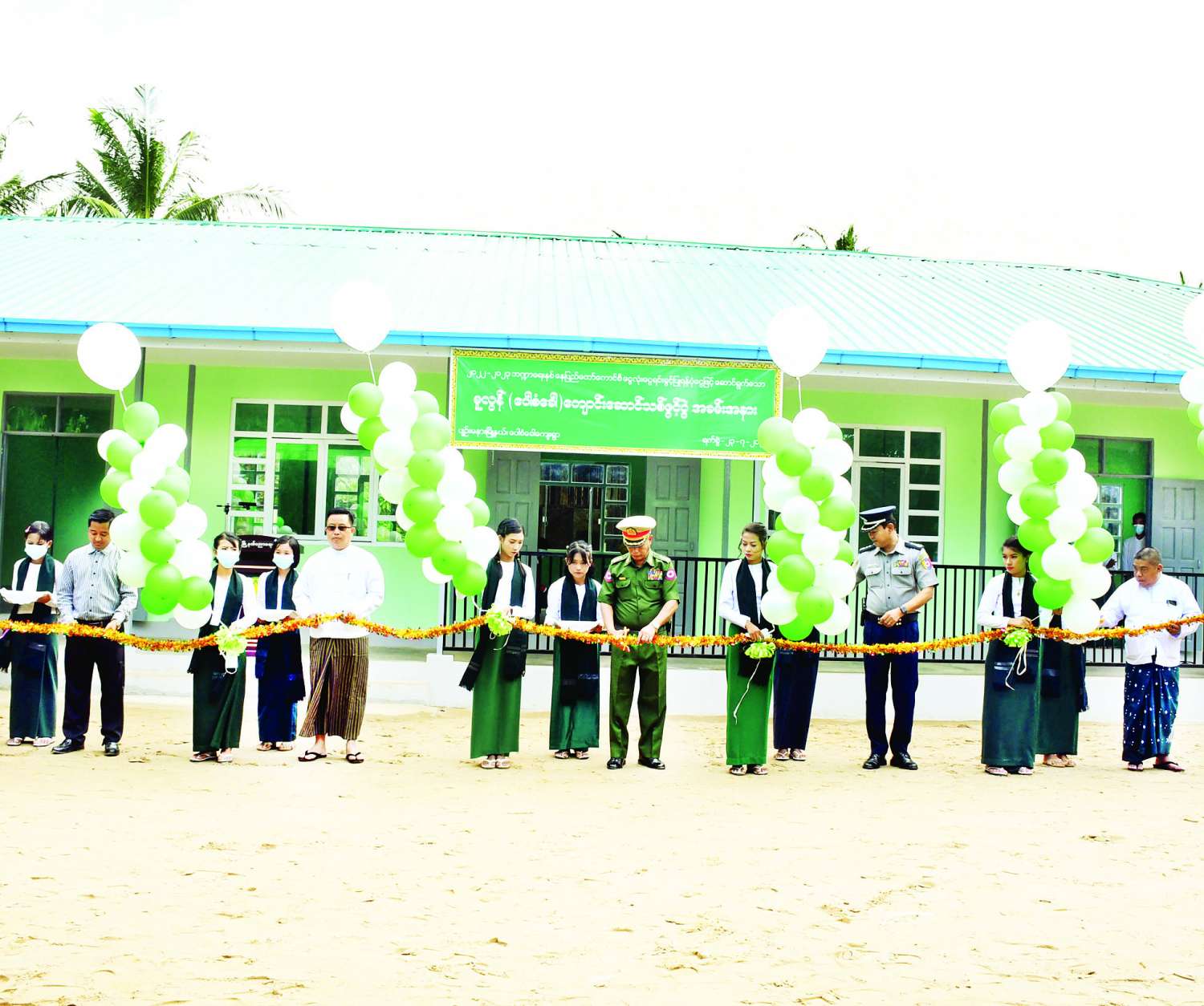 ယင်းနောက် ကျောင်းဆောင်သစ်များနှင့် ပတ်သက်သည့် အချက်အလက်များကို GBH ကုမ္ပဏီမှ မန်နေးဂျင်းဒါရိုက်တာနှင့် တော်ဝင်ထီးလှိုင်ကုမ္ပဏီမှ မန်နေးဂျင်း ဒါရိုက်တာတို့က လွှဲပြောင်းပေးအပ်ရာ မြို့နယ်ပညာရေးမှူးတာဝန်ခံ ဦးတင်ဆန်းက လက်ခံရယူသည်။