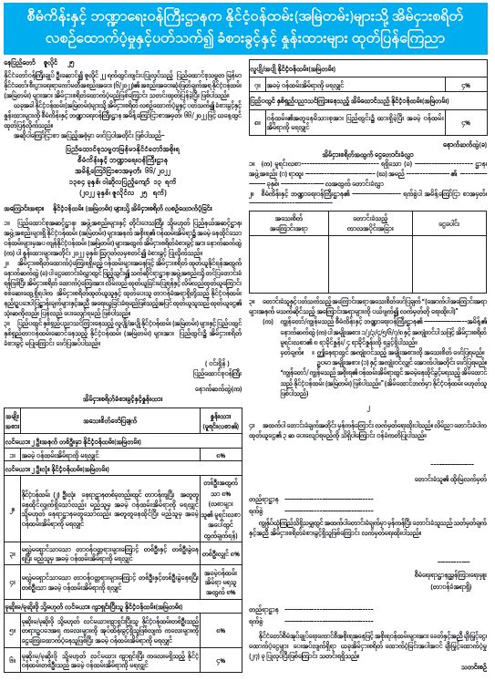 စီမံကိန်းနှင့် ဘဏ္ဍာရေးဝန်ကြီးဌာနက နိုင်ငံ့ဝန်ထမ်း(အမြဲတမ်း)များသို့ အိမ်ငှားစရိတ် လစဉ်ထောက်ပံ့မှုနှင့်ပတ်သက်၍ ခံစားခွင့်နှင့် နှုန်းထားများ ထုတ်ပြန်ကြေညာ 07/25/2022