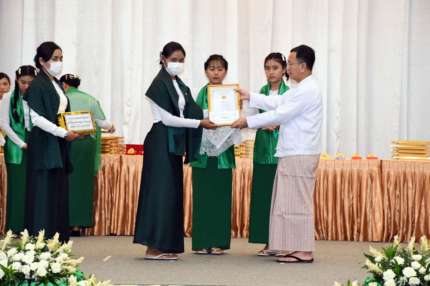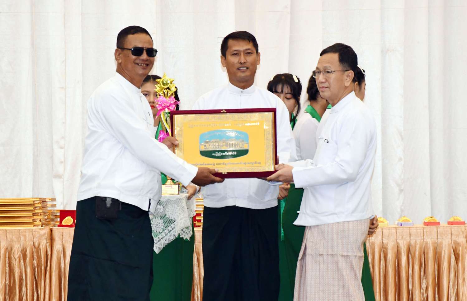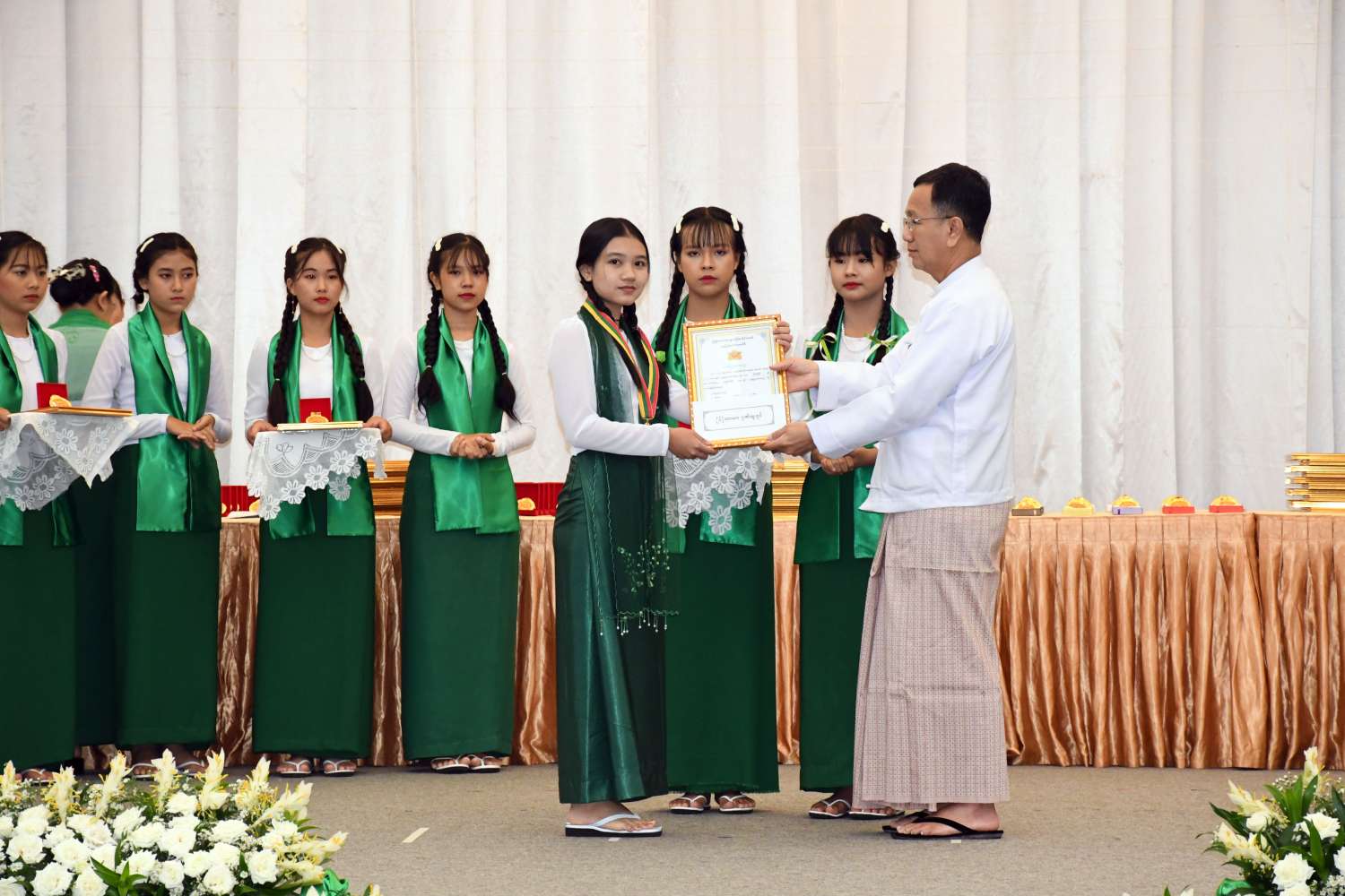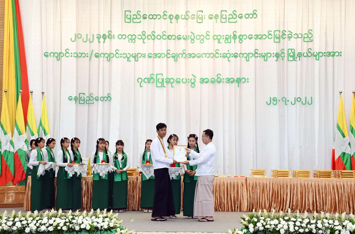 ယင်းနောက် နေပြည်တော်ကောင်စီဥက္ကဋ္ဌ ဒေါက်တာမောင်မောင်နိုင်က လေးဘာသာနှင့်အထက် ဂုဏ်ထူးရရှိအောင် သင်ကြားပေးနိုင်ခဲ့သည့် အခြေခံပညာအထက်တန်းကျောင်းများမှ ဆရာ/ဆရာမများအား ဂုဏ်ပြုလက်ဆောင်များကိုလည်းကောင်း၊ ခြောက်ဘာသာ ဂုဏ်ထူးရရှိကြသည့် ကျောင်းသား/ကျောင်းသူ(၁၀)ဦးတို့ကို ဂုဏ်ပြုဆုတံဆိပ်များ၊ ဂုဏ်ပြုမှတ်တမ်းလွှာများနှင့် ဂုဏ်ပြုဆုငွေများကိုလည်းကောင်း ပေးအပ်ချီးမြှင့်သည်။