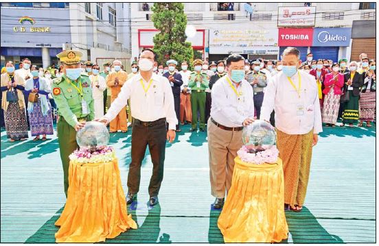 ရှေးဦးစွာ ပြန်ကြားရေးဝန်ကြီးဌာန ပြည်ထောင်စုဝန်ကြီး ဦးမောင်မောင်အုန်း၊ ရှမ်းပြည်နယ်ဝန်ကြီးချုပ် ဒေါက်တာကျော်ထွန်း၊ အရှေ့ပိုင်းတိုင်းစစ်ဌာနချုပ်တိုင်းမှူး ဗိုလ်ချုပ် နီလင်းအောင်နှင့် မြို့မိမြို့ဖ ဦးမောင်မောင်မြင့်တို့က လူထုအခြေပြုဗဟိုဌာနဆိုင်းဘုတ်ကို စက်ခလုတ်နှိပ်၍ ဖွင့်လှစ်ပေးပြီး စုပေါင်းမှတ်တမ်းတင် ဓာတ်ပုံရိုက်ကြသည်။