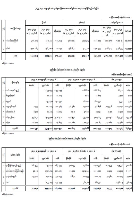 ၂၀၂၂-၂၀၂၃ ဘဏ္ဍာနှစ် ကုန်သွယ်မှုအခြေအနေအား ယခင်နှစ်အလားတူကာလနှင့် နှိုင်းယှဉ်တင်ပြခြင်း