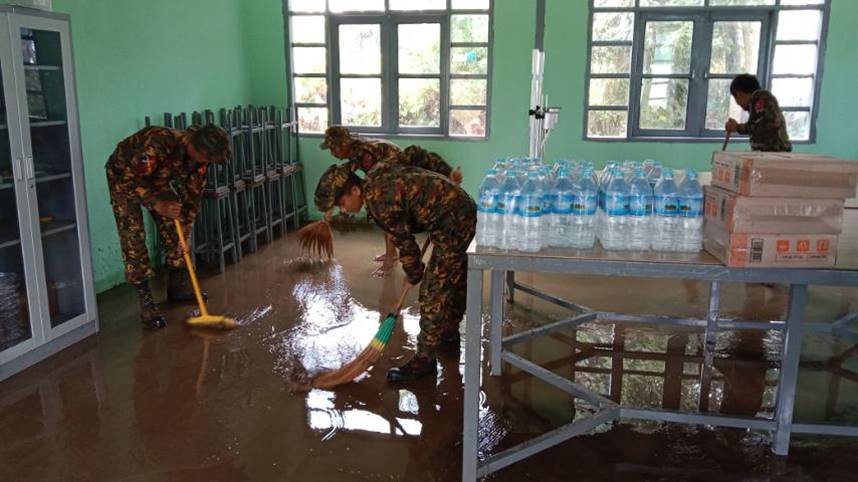အဆိုပါ ရေဝင်ရောက်မှုများ ဖြစ်ပေါ်ခဲ့သည့်နေရာများသို့ ယနေ့နေ့လယ်ပိုင်းတွင် နေပြည်တော်တိုင်းစစ်ဌာနချုပ်မှ နယ်မြေခံတပ်မတော်သားများ၊ မြန်မာနိုင်ငံ ရဲတပ်ဖွဲ့ဝင်များ၊ မီးသတ်တပ်ဖွဲ့ဝင်များ၊ ဌာနဆိုင်ရာဝန်ထမ်းများနှင့် စေတနာ့ဝန်ထမ်းများက သွားရောက်၍ ရေဝင်ရောက်ခဲ့သည့် နေအိမ်များအတွင်း သန့်ရှင်းရေးဆောင်ရွက်ပေးခြင်း၊ ပြိုကျပျက်စီးနေသည့် အုတ်တံတိုင်းများနှင့် အဆောက်အဦများအား ဖယ်ရှားရှင်းလင်းပေးခြင်းနှင့် လမ်းပိတ်ဆို့နေသည့် သစ်ပင်၊ သစ်ကိုင်းများအား ခုတ်ထွင်ရှင်းလင်းပေးခြင်းများကို ဆောင်ရွက်ပေးခဲ့ကြောင်း သတင်းရရှိသည်။