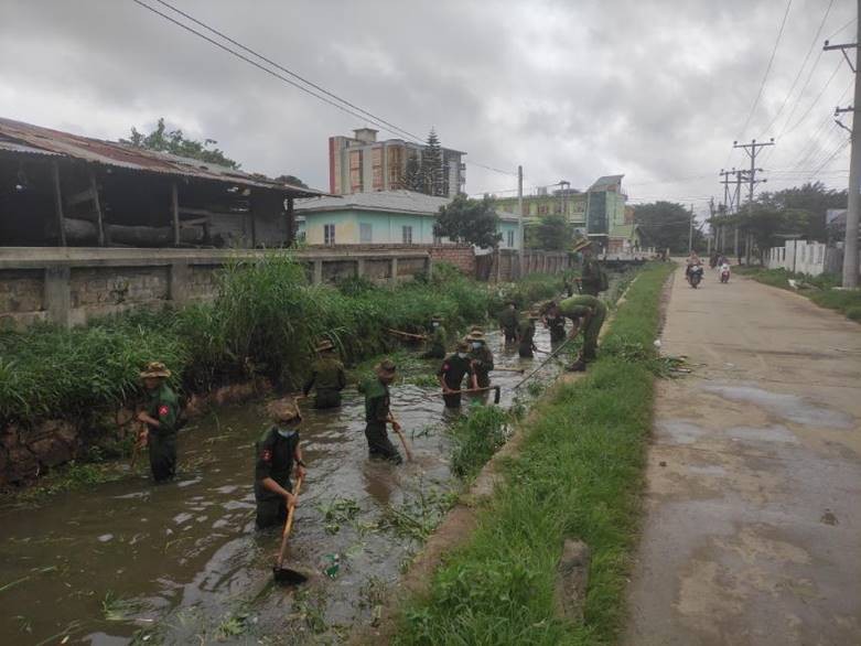 မန္တလေးတိုင်းဒေသကြီး၊ ပြင်ဦးလွင်မြို့နယ် အတွင်း၌ ဇူလိုင် ၃၁ ရက် နံနက် ၂ နာရီမှ နံနက် ၁၁ နာရီ ၃၀ မိနစ်ချိန်ခန့်အထိ မိုးသည်းထန်စွာ ရွာသွန်းခဲ့ပြီးနောက် မြို့ပေါ် ရပ်ကွက်၊ ကျေးရွာအချို့၌ ရေကြီးရေလျှံမှု ဖြစ်ပေါ်ခဲ့ကာ ပျက်စီးဆုံးရှုံးမှုများ ဖြစ်ပေါ်ခဲ့သည့် နေရာများအား ယနေ့ နေ့လယ်ပိုင်းတွင် အလယ်ပိုင်းတိုင်းစစ်ဌာနချုပ်၊ ပြင်ဦးလွင်တပ်နယ်မှ နယ်မြေခံ တပ်မတော် သားများ၊ မြန်မာနိုင်ငံ ရဲတပ်ဖွဲ့ဝင်များ၊ မီးသတ်တပ်ဖွဲ့ဝင်များ၊ ဌာနဆိုင်ရာဝန်ထမ်းများ၊ စေတနာ့ဝန်ထမ်းများနှင့် ဒေသခံပြည်သူများက ရပ်ကွက်ကြီး(၁)အတွင်းရှိ ဂဲလောင်ချောင်း ရေတိုက်စားမှုရှိသည့် ချောင်းဘေးဘောင်များပြင်ဆင်ခြင်း၊ ရပ်ကွက်ကြီး(၃)ရှိ အခြေခံပညာ အထက်တန်းကျောင်းခွဲ၊ အမှတ်(၁)အခြေခံပညာ အလယ်တန်းကျောင်း၊ ရပ်ကွက်ကြီး(၉)ရှိ အေးမြချမ်းသာ သီလရှင်ကျောင်း၊ ဂေါ်ရခါးကျောင်းနှင့် ဆင်လမ်းကျေးရွာရှိ ဓမ္မိကာရာမ စာသင်တိုက်တို့၌ ပျက်စီးမှုများအား ဖယ်ရှားရှင်းလင်းခြင်း၊ ဂဲလောင်ချောင်းတစ်လျှောက် ဂန္ဓမာမြိုင်အဝိုင်းမှ မန္တလေး-လားရှိုးလမ်း AGD ဘဏ်အထိ ရေစီးရေလာကောင်းမွန် စေရေးတို့ကို စုပေါင်းဆောင်ရွက်ပေးခဲ့ကြကြောင်း သတင်းရရှိသည်။