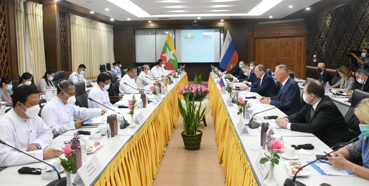 ယင်းနောက် မြန်မာ-ရုရှား နှစ်နိုင်ငံ နိုင်ငံခြားရေးဝန်ကြီးဌာနများအကြားဆွေးနွေးပွဲကို နိုင်ငံခြားရေးဝန်ကြီးဌာန၊ ပြည်ထောင်စုဝန်ကြီးနှင့် ရုရှားဖက်ဒရေးရှင်းနိုင်ငံ၊ နိုင်ငံခြားရေးဝန်ကြီးတို့က ဦးဆောင်ကျင်းပခဲ့ရာ နှစ်ဖက်နိုင်ငံခြားရေးဝန်ကြီးဌာနများမှ ဒုတိယဝန်ကြီးများနှင့် အဆင့်မြင့်အရာရှိကြီးများ တက်ရောက်ခဲ့ကြသည်။ ပြည်ထောင်စုဝန်ကြီးက မြန်မာနိုင်ငံ၏ မိတ်ဆွေရင်းချာ နိုင်ငံဖြစ်သည့် ရုရှားနိုင်ငံအနေဖြင့် မြန်မာအရေးနှင့်ပတ်သက်၍ နှစ်နိုင်ငံချင်းသာမက နိုင်ငံတကာမျက်နှာစာတွင် အစဉ်တစိုက် ပံ့ပိုးကူညီမှုများအတွက် ကျေးဇူးတင်ရှိကြောင်း ပြောကြားခဲ့သည်။ ထို့ပြင် မြန်မာအစိုးရ၏ ကိုဗစ်-၁၉ ရောဂါကာကွယ်ထိန်းချုပ်ရေးလုပ်ငန်းစဉ်များ၌ အထောက်အကူပြုနိုင်ရန် ၂၀၂၂ ခုနှစ်၊ ဇန်နဝါရီလအတွင်းက ကိုဗစ်-၁၉ ကာကွယ်ဆေးလှူဒါန်းခဲ့မှုများနှင့် ယခုခရီးစဉ်အတွင်း မျောက်ကျောက်ရောဂါစစ်ဆေးသည့် Test Kits လှူဒါန်းမှုများအတွက်လည်း ကျေးဇူးတင်ရှိကြောင်း ပြောကြားခဲ့သည်။