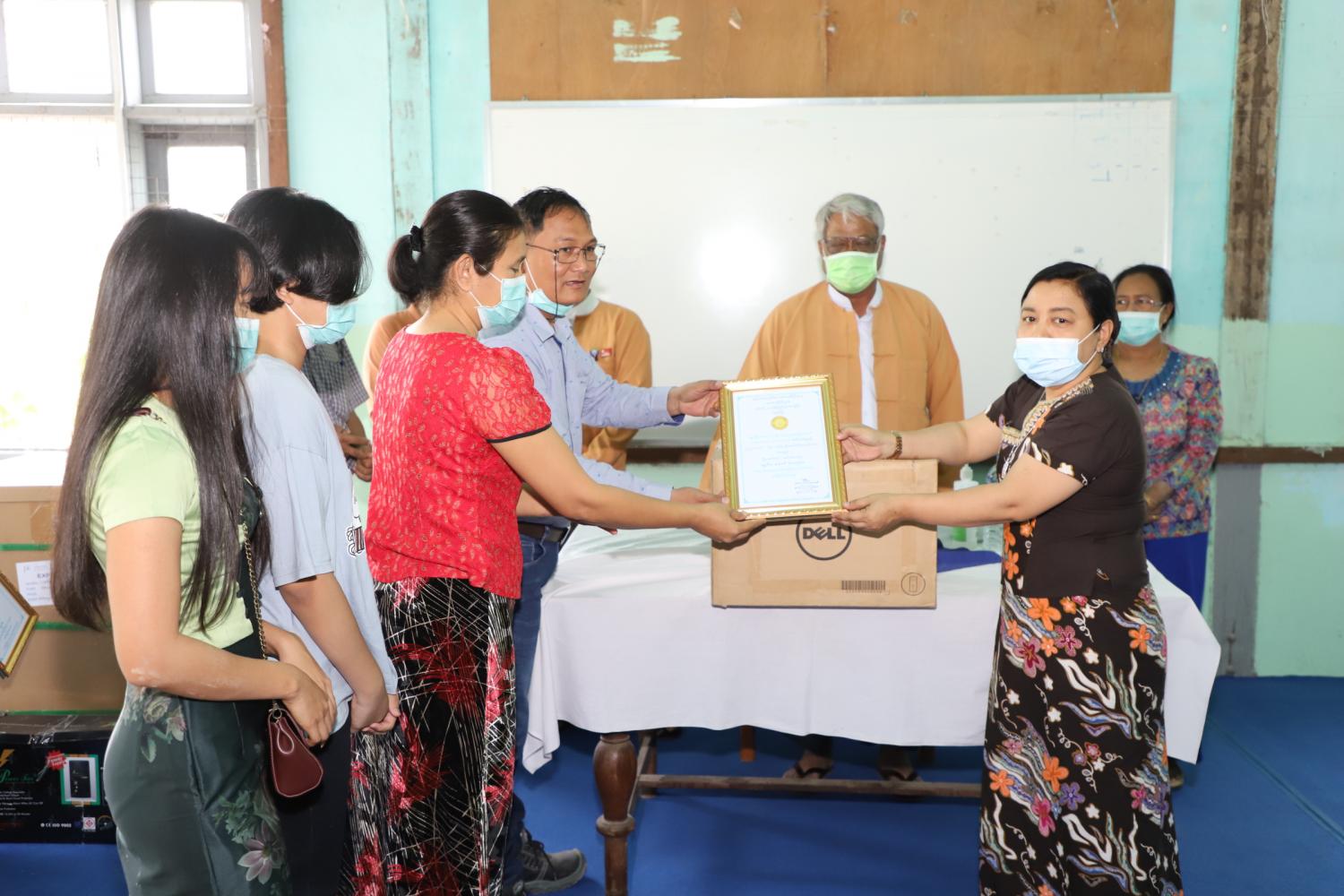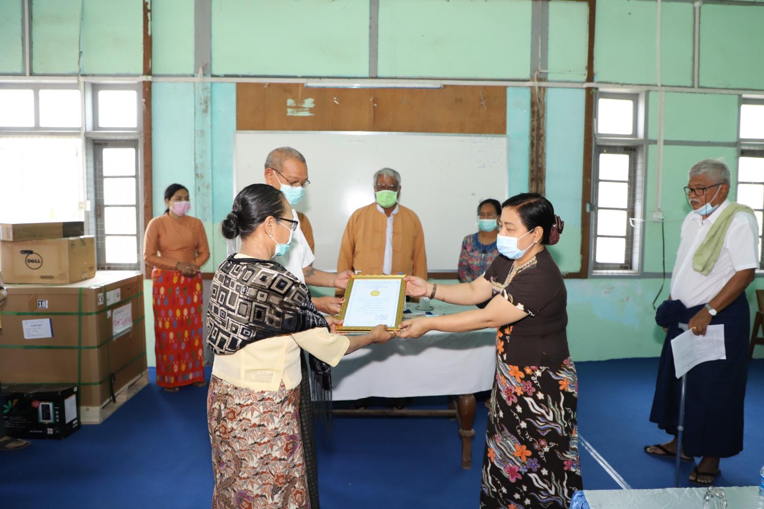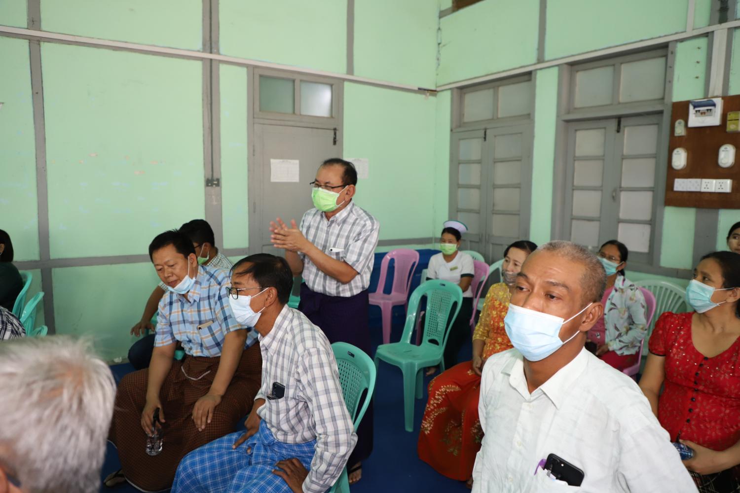 ဆက်လက်၍ ကိုရိုနာဗိုင်းရပ်နှင့်ပတ်သက်၍ ဆေးရုံအုပ်ကြီးမှ ကိုရိုနာဗိုင်းရပ်စ်ကာကွယ်ရေးလုပ်ငန်းများ ဆောင်ရွက်နေမှုအခြေအနေနှင့်လိုအပ်ချက်များကို တင်ပြရာ တိုင်းဒေသကြီးဝန်ကြီးချုပ်က ပေါင်းစပ် ဖြည့်ဆည်းဆောင်ရွက်ပေးခဲ့ပြီးနောက် ဆေးရုံအုပ်ကြီးက အလှူရှင်များ၏ အလှူငွေကျပ်(၃၅၄)သိန်းနှင့် ကျန်းမာရေးသုံးပစ္စည်းများ တန်ဖိုးငွေကျပ်(၅၀၀)သိန်း၊ စုစုပေါင်းလှူဒါန်းငွေကျပ်သိန်း(၈၅၄)သိန်း အား လက်ခံရယူခဲ့ပြီး အလှူများအား ဂုဏ်ပြုမှတ်တမ်းလွှာများကို ပြန်လည်ပေးအပ်ခဲ့ကာ ကျေးဇူးတင်စကား ပြောကြားခဲ့သည်။