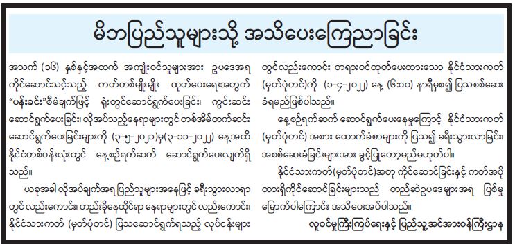 မိဘပြည်သူများသို့ အသိပေးကြေညာခြင်း