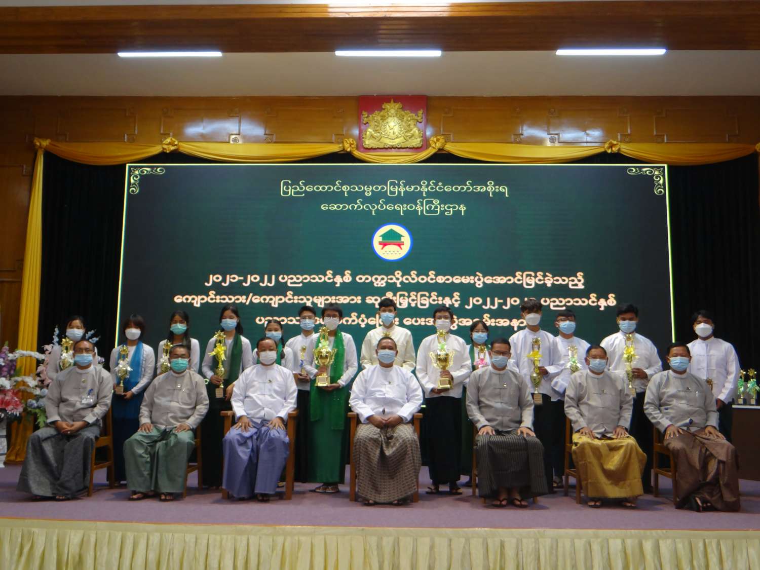 ဆောက်လုပ်ရေးဝန်ကြီးဌာန ဝန်ထမ်းများ၏ သား၊သမီးများ ၂၀၂၁-၂၀၂၂ ပညာသင်နှစ် တက္ကသိုလ်ဝင်တန်းတွင် အောင်မြင်ခဲ့သည့် ကျောင်းသားကျောင်းသူများအား ဂုဏ်ပြုချီးမြှင့်ခြင်းနှင့် ၂၀၂၂-၂၀၂၃ ပညာသင်နှစ် မူလတန်း၊ အလယ်တန်း၊ အထက်တန်းနှင့် တက္ကသိုလ် အဆင့်ကျောင်းများတွင် တက်ရောက်လျက်ရှိသည့် ဝန်ထမ်းသား၊ သမီးများအတွက် ပညာသင်စရိတ် ထောက်ပံ့ပေးအပ်ခြင်း အခမ်းအနားကို ယနေ့နံနက် ၁၁ နာရီခွဲတွင် နေပြည်တော်ရှိ ဆောက်လုပ်ရေးဝန်ကြီးဌာန၊ စုဝေးခန်းမဆောင်၌ ကျင်းပသည်။
