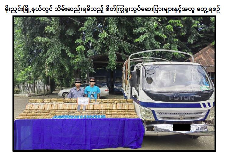 ဖြစ်စဉ်မှာ မူးယစ်ဆေးဝါးတားဆီး နှိမ်နင်းရေးရဲတပ်ဖွဲ့မှ တပ်ဖွဲ့ဝင်များပါဝင်သော ပူးပေါင်းအဖွဲ့ သည် ဩဂုတ် ၉ ရက် ညနေ ၅ နာရီခွဲတွင် ကချင်ပြည်နယ်၊ မိုးညှင်းမြို့နယ်၊ နန့်စီးအောင် ပူးပေါင်း စစ်ဆေးရေးစခန်းတွင် မန္တလေးမှ မိုးညှင်းဘက်သို့ အောင်ဆွေဦး မောင်းနှင်ပြီး မင်းမင်းသန်း လိုက်ပါလာသည့် FOTON ၆ ဘီးမော်တော်ယာဉ်ကို သတင်းအရရှာဖွေရာ ယာဉ်ပေါ်တွင် ပြောင်းဖူးစေ့အိတ်များ အတွင်းထည့်သွင်းသယ်ဆောင်လာသည့် ဒေသကာလ တန်ဖိုးငွေကျပ် ၃ ဘီလီယံကျော် တန်ဖိုးရှိ စိတ်ကြွရူးသွပ်ဆေးပြား သိန်း ၂၀ ကျော် သိမ်းဆည်းရမိခဲ့ကြောင်း၊ စစ်ဆေး ဖော်ထုတ်ချက်အရ သိမ်းဆည်းရမိ စိတ်ကြွရူးသွပ်ဆေးပြားများအား မန္တလေးတိုင်းဒေသကြီးမှ ကချင်ပြည်နယ်သို့ သယ်ဆောင်ခြင်း ဖြစ်ကြောင်း။