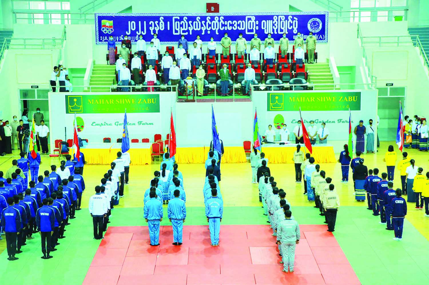 ပြည်နယ်နှင့် တိုင်းဒေသကြီးများမှ မျိုးဆက်သစ် အားကစားသမားများ ပေါ်ထွက်လာစေရန်နှင့် မြန်မာ့ဂျူဒိုအားကစား အဆင့်အတန်း တိုးတက်မြင့်မားလာစေရန် ရည်ရွယ်၍ “၂၀၂၂ ခုနှစ် ပြည်နယ်နှင့် တိုင်းဒေသကြီး ဂျူဒိုပြိုင်ပွဲ” ဖွင့်ပွဲအခမ်းအနားကို ယနေ့နံနက် ၉ နာရီတွင် ဝဏ္ဏသိဒ္ဓိ အားကစားရုံ (A) ၌ ကျင်းပသည်။