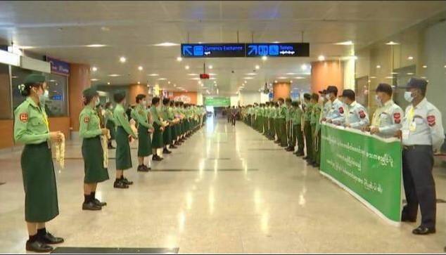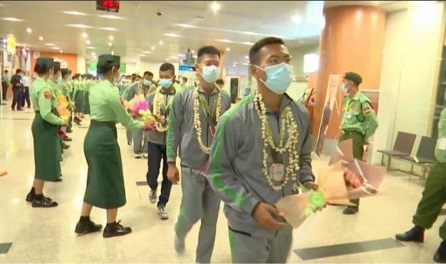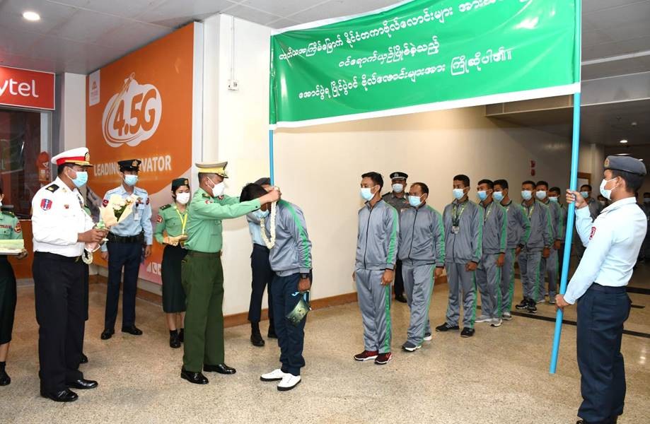အဆိုပါတတိယအကြိမ်မြောက် နိုင်ငံတကာဗိုလ်လောင်းများ အားကစား ပြိုင်ပွဲ (3rd CISM World Cadet Games)တွင် ပါဝင်ယှဉ်ပြိုင်ခဲ့ကြသည့် ဗိုလ်လောင်းများနှင့် အုပ်ချုပ်သူနည်းပြအရာရှိများသည် ယနေ့နံနက်ပိုင်းက ရန်ကုန်အပြည်ပြည်ဆိုင်ရာလေဆိပ်သို့ ပြန်လည်ရောက်ရှိကြရာ ရန်ကုန်တိုင်းစစ်ဌာနချုပ်တိုင်းမှူး ဗိုလ်ချုပ်ညွန့်ဝင်းဆွေနှင့်အဖွဲ့ဝင်များ၊ တာဝန်ရှိသူများက ကြိုဆိုနှုတ်ဆက်ခဲ့ကြကြောင်း သတင်းရရှိသည်။