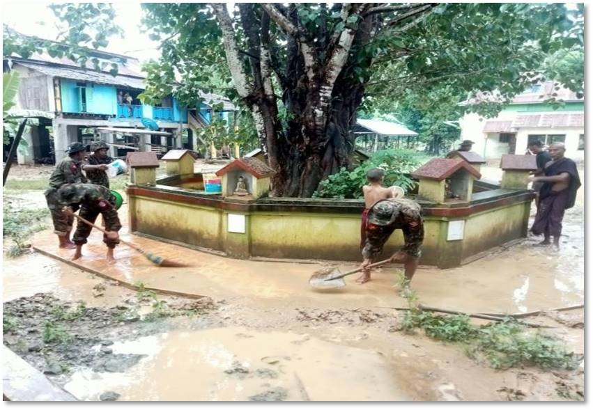 ရန်ကုန်တိုင်းဒေသကြီး၊ မရမ်းကုန်းမြို့နယ်၊ တောင်ဥက္ကလာပမြို့နယ်၊ မြောက်ဥက္ကလာပမြို့နယ်၊ ရွှေပြည်သာမြို့နယ်၊ မင်္ဂလာဒုံမြို့နယ်၊ သန်လျင်မြို့နယ်၊ ခရမ်းမြို့နယ်နှင့် သုံးခွမြို့နယ်၊ ဧရာဝတီတိုင်းဒေသကြီး၊ ငပုတောမြို့နယ်နှင့် ရခိုင်ပြည်နယ်၊ ကျောက်ဖြူမြို့နယ်များအတွင်း သြဂုတ် ၁၆ ရက်နှင့် ၁၇ ရက်တို့တွင် မိုးသည်းထန်စွာရွာသွန်းပြီး လေပြင်းတိုက်ခတ်မှုများကြောင့် ရေဝင်ရောက်မှုများဖြစ်ပေါ်ခဲ့ရာ နယ်မြေခံတပ်မတော်သားများ၊ မြန်မာနိုင်ငံရဲတပ်ဖွဲ့ဝင်များ၊ မီးသတ်တပ်ဖွဲ့ဝင်များနှင့် ဌာနဆိုင်ရာဝန်ထမ်းများက လိုအပ်သည့် ကူညီကယ်ဆယ်ရေးလုပ်ငန်းများ ဆောင်ရွက်ပေးခဲ့ကြသည်။