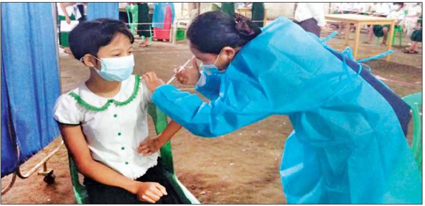 ထို့အတူ ကျောင်းသားကျောင်းသူများကိုလည်း ကိုဗစ်-၁၉ရောဂါ ကာကွယ်ဆေးများ ထိုးနှံပေးလျက်ရှိရာ ယနေ့တွင် ရခိုင်ပြည်နယ်အတွင်းရှိ မြို့နယ် ခုနစ်မြို့နယ်တို့၌ ကျောင်းသားကျောင်းသူ ၁၄၄၇ ဦး၊ မန္တလေးတိုင်းဒေသကြီးအတွင်းရှိ ခရိုင်ခုနစ်ခုတို့၌ ကျောင်းသားကျောင်းသူ ၄၆၉၂ ဦးတို့ကို တပ်မတော်မှ ဆေးအဖွဲ့များက ပြည်သူ့ဆေးရုံများမှ ဆရာဝန်များ၊ သက်ဆိုင်ရာ ကျန်းမာရေးဝန်ထမ်းများ၊ စေတနာ့ဝန်ထမ်းများနှင့် ပူးပေါင်း၍ ကိုဗစ်-၁၉ ရောဂါ ကာကွယ်ဆေး ထိုးနှံပေးသည်။