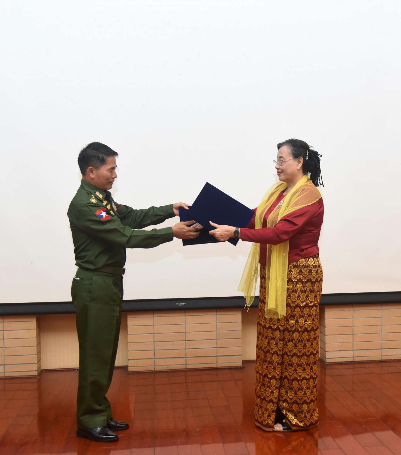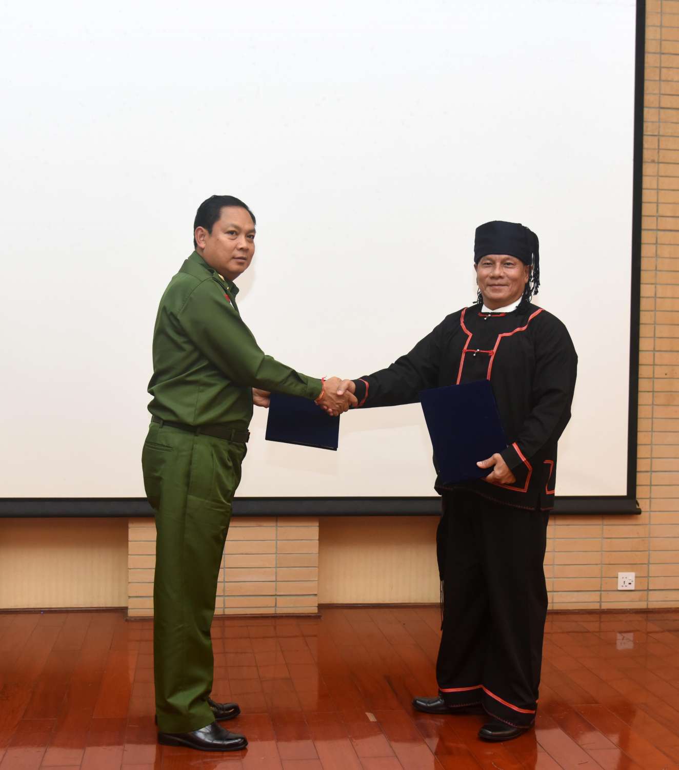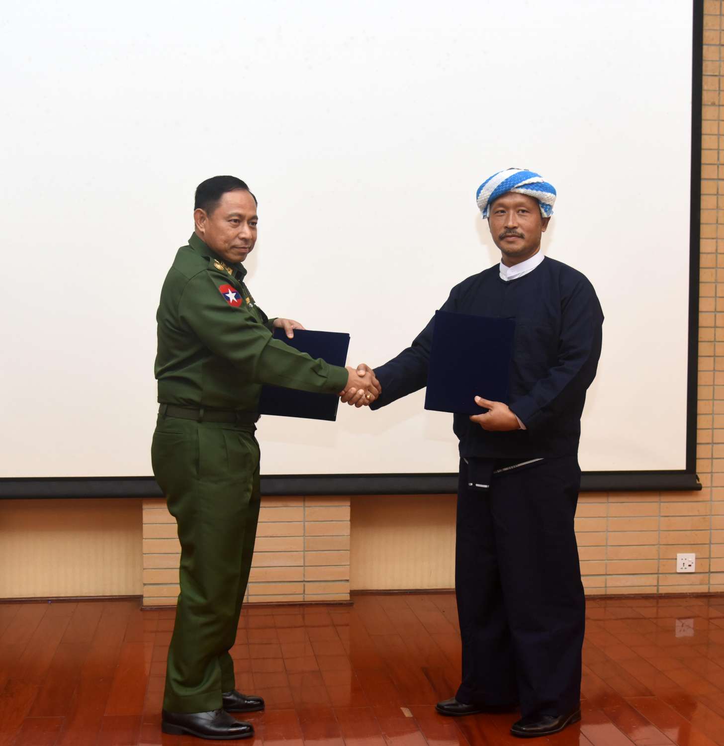 ယင်းနောက် တက်ရောက်လာကြသည့် တိုင်းရင်းသားလက်နက်ကိုင်အဖွဲ့များကိုယ်စား ပအိုဝ်းအမျိုးသားလွတ်မြောက်ရေးအဖွဲ့ချုပ်(PNLO) ဥက္ကဋ္ဌ ခွန်သူရိန်နှင့် ငြိမ်းချမ်းရေးဆွေးနွေးရေးအဖွဲ့ခေါင်းဆောင် ဒုတိယဗိုလ်ချုပ်ကြီး ရာပြည့်တို့က နိဂုံးချုပ်အမှာစကားများ ပြောကြားပြီး ပြန်ကြားရေးဝန်ကြီးဌာနမှ ထုတ်ဝေသည့် နိုင်ငံတော်စီမံအုပ်ချုပ်ရေးကောင်စီ၏ နိုင်ငံအကျိုး သယ်ပိုးဆောင်ရွက်ချက် မှတ်တမ်းစာအုပ်၊ တပ်ပေါင်းစုနိုင်ငံရေးစာအုပ်၊ MRTV DTH Receiver ၊ ၂ ပေစလောင်းနှင့် လက်ဆောင်ပစ္စည်းများကို ပေးအပ်ခဲ့ကြောင်း သိရသည်။