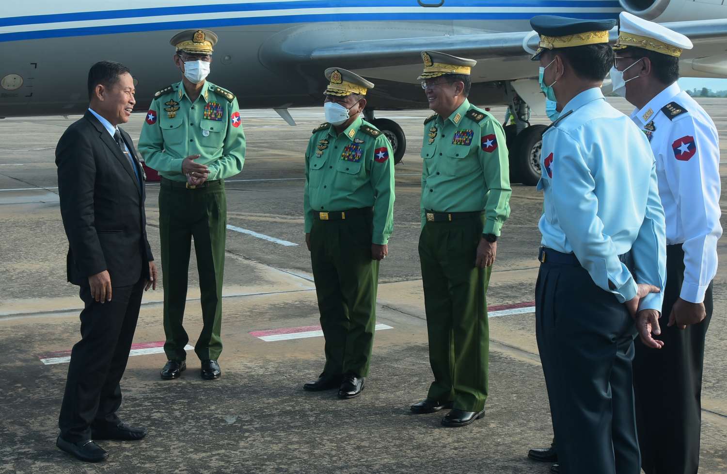 အဆိုပါ မြန်မာ့တပ်မတော်ကိုယ်စားလှယ်အဖွဲ့သည် ယနေ့နံနက်ပိုင်းတွင် နေပြည်တော်လေဆိပ်သို့ရောက်ရှိကြရာ လေဆိပ်တွင် နိုင်ငံတော်စီမံအုပ်ရေးကောင်စီဝင်များ ဖြစ်ကြသည့် ဗိုလ်ချုပ်ကြီး မြထွန်းဦး၊ ဒုတိယဗိုလ်ချုပ်ကြီး စိုးထွဋ်၊ ကောင်စီအတွင်းရေးမှူး ဒုတိယဗိုလ်ချုပ်ကြီး အောင်လင်းဒွေး၊ ကောင်စီတွဲဖက်အတွင်းရေးမှူး ဒုတိယဗိုလ်ချုပ်ကြီး ရဲဝင်းဦး၊ ကာကွယ်ရေးဦးစီးချုပ်ရုံး (ကြည်း၊ ရေ၊ လေ) မှ တပ်မတော်အရာရှိကြီးများ၊ နေပြည်တော်တိုင်းစစ်ဌာနချုပ်တိုင်းမှူး ဗိုလ်ချုပ်ဇော်ဟိန်းနှင့် တာဝန်ရှိသူများက ကြိုဆိုနှုတ်ဆက်ခဲ့ကြကြောင်း သတင်းရရှိသည်။