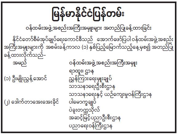 ဝန်ထမ်းအဖွဲ့အစည်းအကြီးအမှူးများ အတည်ပြုခန့်ထားခြင်း
