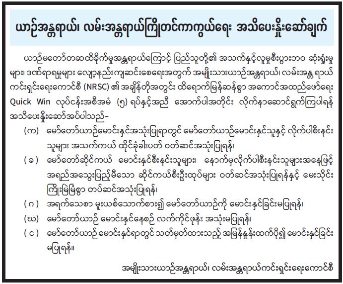 ဦးစီးဌာနနှင့် လုပ်ငန်းများ၏ ကြေညာချက်များ