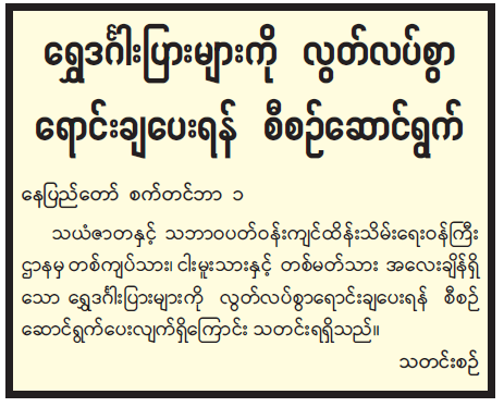 ရွှေဒင်္ဂါးပြားများကို လွတ်လပ်စွာရောင်းချပေးရန် စီစဉ်ဆောင်ရွက်