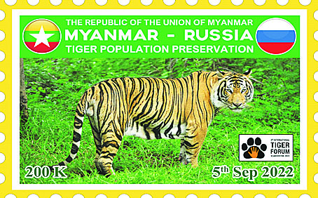 ပို့ဆောင်ရေးနှင့်ဆက်သွယ်ရေးဝန်ကြီးဌာန၊ မြန်မာ့စာတိုက်လုပ်ငန်းမှ ၂၀၂၂ ခုနှစ် စက်တင်ဘာ ၅ ရက်၌ ရုရှားနိုင်ငံတွင်ကျင်းပမည့် အပြည်ပြည်ဆိုင်ရာ ကျားကောင်ရေ တည်တံ့ရေး ဖိုရမ်အတွက် မြန်မာ - ရုရှားနှစ်နိုင်ငံ ကျားထိန်းသိမ်းရေး အထိမ်းအမှတ် (၂၀၀ ကျပ်တန်) အထူးထုတ် စာပို့တံဆိပ်ခေါင်းသစ် သုံးမျိုးအား ၂၀၂၂ ခုနှစ် စက်တင်ဘာ ၅ ရက်၊ မြန်မာသက္ကရာဇ် ၁၃၈၄ ခုနှစ် တော်သလင်းလဆန်း (၁၁)ရက် (တနင်္လာနေ့) နံနက် ၉ နာရီခွဲမှ စတင်၍ နေပြည်တော် ဗဟိုစာတိုက်ကြီး၊ ရန်ကုန်စာတိုက်ကြီး၊ မန္တလေး စာတိုက်ကြီးတို့နှင့် တိုင်းဒေသကြီး/ ပြည်နယ်များရှိ စာတိုက်ကြီးများတွင် တစ်ပြိုင်တည်း ရောင်းချပေးသွားမည်ဖြစ်သည်။