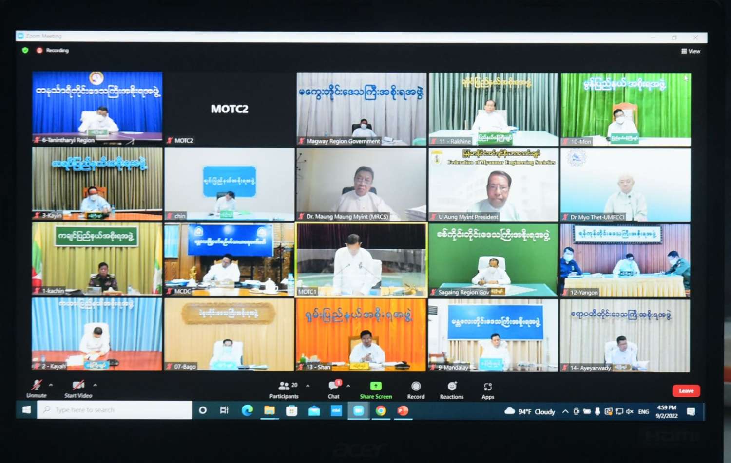 အစည်းအဝေးသို့ ပြည်ထောင်စုဝန်ကြီးများ၊ နေပြည်တော်ကောင်စီဥက္ကဋ္ဌနှင့် တာဝန်ရှိသူများတက်ရောက်ကြပြီး တိုင်းဒေသကြီးနှင့်ပြည်နယ်ဝန်ကြီးချုပ်များ၊ မြို့တော်ဝန်များနှင့် တာဝန်ရှိသူများက ဗီဒီယိုကွန်ဖရင့်စနစ်ဖြင့် တက်ရောက်ကြသည်။