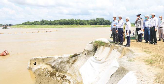 ပို့ဆောင်ရေးနှင့်ဆက်သွယ်ရေး ဝန်ကြီးဌာနပြည်ထောင်စုဝန်ကြီး ဗိုလ်ချုပ်ကြီး တင်အောင်စန်းသည် ယနေ့တွင် ဧရာဝတီတိုင်းဒေသ ကြီးအတွင်းရှိရေတိုက်စားကမ်းပြိုမှု ကာကွယ်ရေး လုပ်ငန်း များကို ကြည့်ရှုစစ်ဆေးသည်။