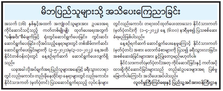 မိဘပြည်သူများသို့ အသိပေးကြေညာခြင်း