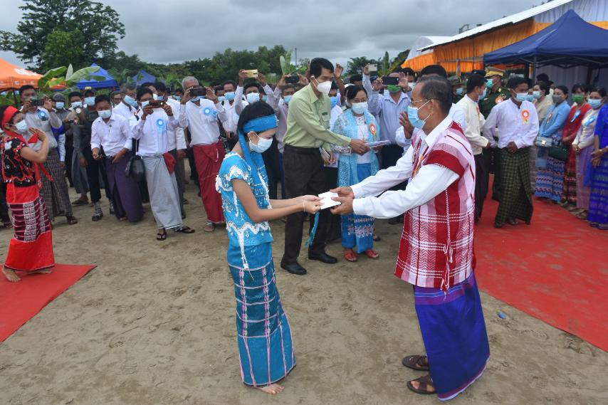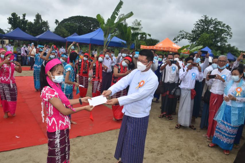 ထို့နောက် တိုင်းဒေသကြီးဝန်ကြီးချုပ်က မိမိတို့တိုင်းဒေသကြီးသည် ကျေးလက်ဒေသကို အခြေခံပြီး စိုက်ပျိုးမွေးမြူရေးလုပ်ငန်းများဖြင့် နိုင်ငံတော်တာဝန်များ သယ်ပိုးဆောင်ရွက် ပေးနေသည့် တိုင်းဒေသကြီးဖြစ်ပါကြောင်း၊ ယနေ့ပြုလုပ်သည့် လူထုအခြေပြုဗဟိုဌာန (Community Centre) တည်ဆောက်ပြီးစီးပါက ဒေသအတွက် စိုက်ပျိုးမွေးမြူရေး၊ ပညာရေး၊ ကျန်းမာရေး စသည့် အသိပညာဗဟုသုတများကို ရှာဖွေလေ့လာနိုင်ကာ ဆွေးနွေးဖလှယ်နိုင်မည်ဖြစ်ပါကြောင်း ပြောကြားပြီး ဖျော်ဖြေရေးအဖွဲ့များ၏ ကပြမှုများကို ကြည့်ရှုအားပေးကြကာ ဂုဏ်ပြုငွေများချီးမြှင့်ခဲ့သည်။