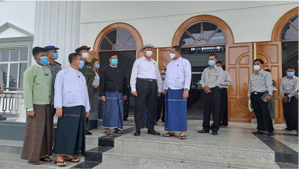 ထို့နောက် ပြည်ထောင်စုဝန်ကြီး၊ မွန်ပြည်နယ်ဝန်ကြီးချုပ်နှင့်အဖွဲ့သည် တရားလွှတ်တော်ရုံး အခန်းဖွဲ့စည်းမှု၊ အချောသပ်လုပ်ငန်းများ ဆောင်ရွက်နေမှု၊ ခြံစည်းရိုး ဆောင်ရွက်နေမှု၊ လွှတ်တော်အဆောက်အဦ မျက်နှာစာလှပစေရေးအတွက် မြေယာရှုခင်း ဆောင်ရွက်မည့် အခြေအနေတို့ကို ကြည့်ရှုစစ်ဆေးပြီး တာဝန်ရှိသူများကို လုပ်ငန်းလိုအပ်ချက်များ မှာကြားသည်။