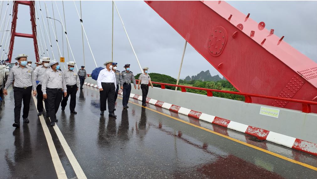 ဆက်လက်၍ ပြည်ထောင်စုဝန်ကြီးသည် မွန်ပြည်နယ် လမ်းပန်းဆက်သွယ်ရေးဝန်ကြီး ရဲမှူးကြီးမျိုးဆွေနှင့်အတူ ဒေသခံနှင့် ခရီးသွားပြည်သူများ သွားလာရေး အဆင်ပြေစေရန် ဖွင့်လှစ်ပေးခဲ့သည့် ကျိုက်မရော-စံပယ်ဂူ-ကော့ပနောလမ်းပေါ်ရှိ အတ္ထရံတံတား(စံပယ်ဂူ) အခြေအနေအား ကြည့်ရှုစစ်ဆေးပြီး လုပ်ငန်းလိုအပ်ချက်များ မှာကြားသည်။