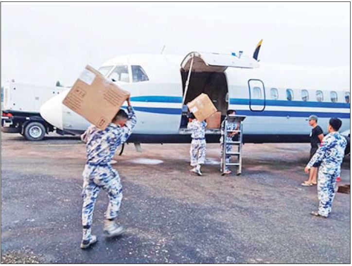 ထိုသို့ ပို့ဆောင်ဖြန့်ဖြူးပေးလျက်ရှိရာ ရန်ကုန်တိုင်းဒေသကြီး မရမ်းကုန်းမြို့နယ် မင်းဓမ္မလမ်းရှိ ပြည်သူ့ကျန်းမာရေးဦးစီးဌာန ဗဟိုကာကွယ်ဆေးသိုလှောင်ခန်း၌ ထားရှိသည့် ဆေးတစ်လုံးလျှင် လူငါးဦးထိုးနိုင်သော Myancopharm၊ Sinovac နှင့် Sinopharm ဆေးများကို ယနေ့တွင် ရခိုင်ပြည်နယ် သံတွဲမြို့သို့ Myancopharm ဆေး ၁၂၀၂၇ လုံး၊ Sinovac ဆေး ၆၄၁၇ လုံး၊ Sinopharm ဆေးအလုံး ၉၀၀ နှင့် ဆေးထိုးအပ်များကို တပ်မတော်လေယာဉ်များဖြင့် ပို့ဆောင်ပေးခဲ့သည်။
