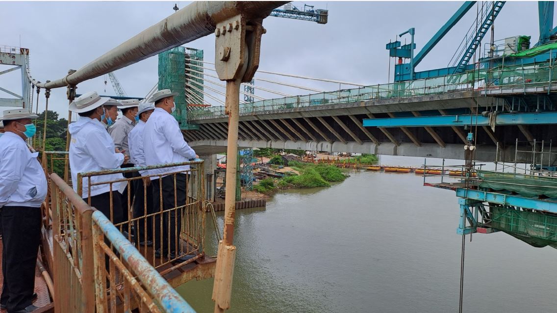 ဆက်လက်၍ ပြည်ထောင်စုဝန်ကြီးသည် ပြည်နယ်လမ်းပန်းဆက်သွယ်ရေးဝန်ကြီး၊ တာဝန်ရှိသူများနှင့်အတူ ဂျိုင်း (ဇာသပြင်) တံတားဟောင်း ကြံ့ခိုင်မှု၊ တံတားသစ်၏ Bored Pile လုပ်ငန်းနှင့် ဆက်စပ်လုပ်ငန်းများ ဆောင်ရွက်နေမှု၊ အိန္ဒု - ကော့ကရိတ်လမ်းအဆင့် မြှင့်တင်ဆောင်ရွက်ထားရှိမှုတို့ကိုလည်းကောင်း၊ ဂျိုင်း(ကော့ကရိတ်)တံတား တံတားချဉ်းကပ် လမ်းများ ဆောင်ရွက်နေမှု ၊ နည်းပညာသစ် ထည့်သွင်းအသုံးပြုထားသည့် ပင်မတံတား ကြမ်းခင်းအစိတ်အပိုင်းများနှင့် ကြိုးဆိုင်းများ ချိတ်ဆက်နေမှုတို့ကိုလည်းကောင်း ကြည့်ရှု စစ်ဆေးသည်။