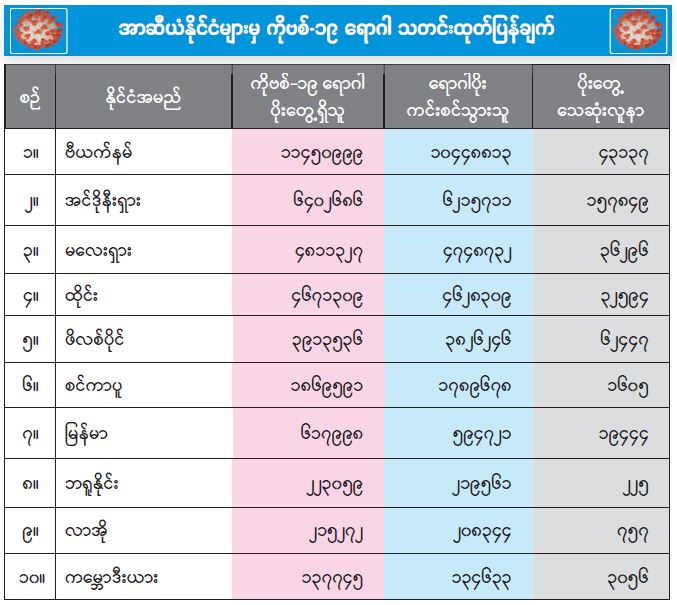 အာဆီယံနိုင်ငံများမှ ကိုဗစ်-၁၉ ရောဂါ သတင်းထုတ်ပြန်ချက်